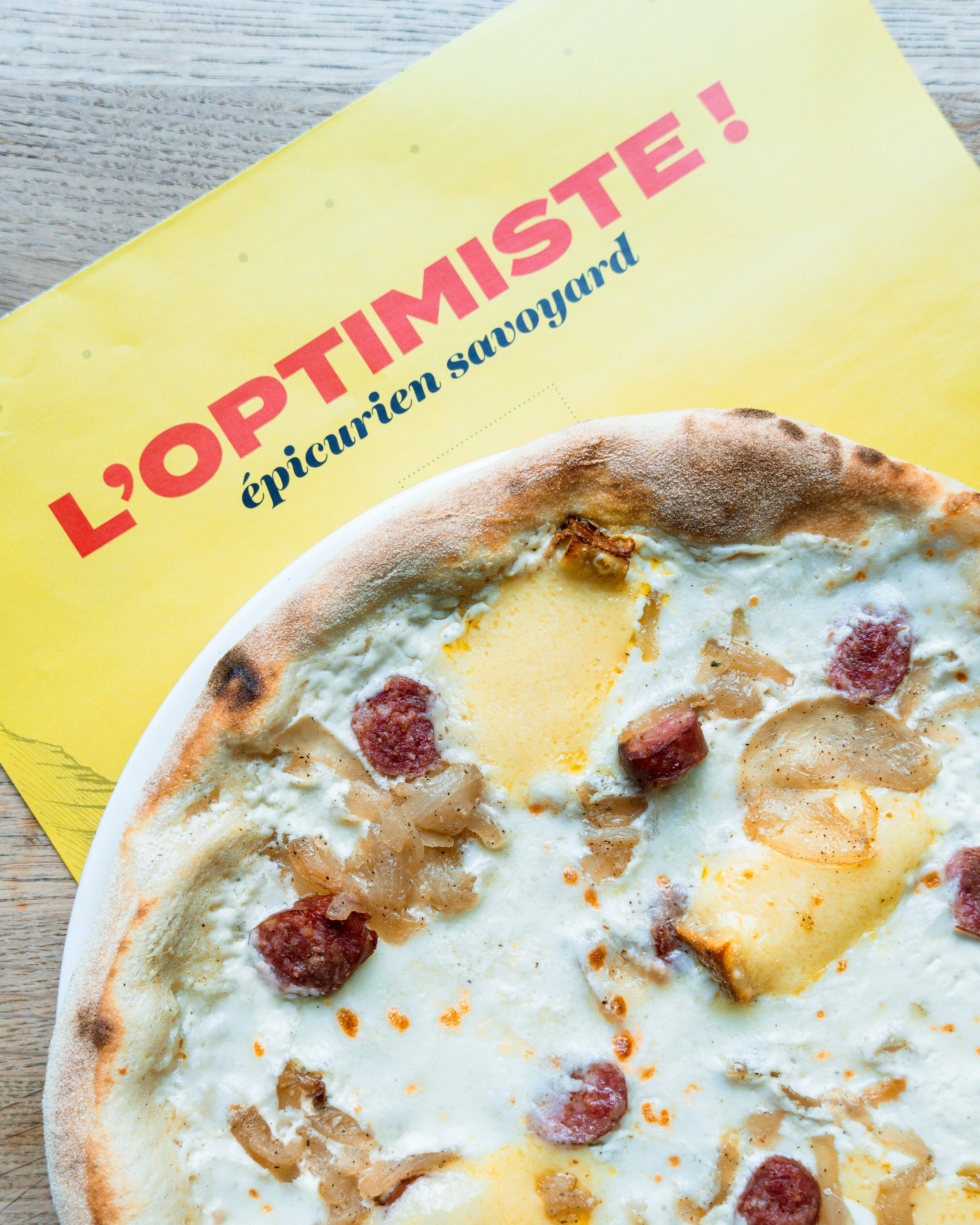Crème, mozzarella 100% Fior di latte, Diots fumés cuit à l'apremont, Beaufort AOP, fondue d'oignons€19.00La Dédé du col