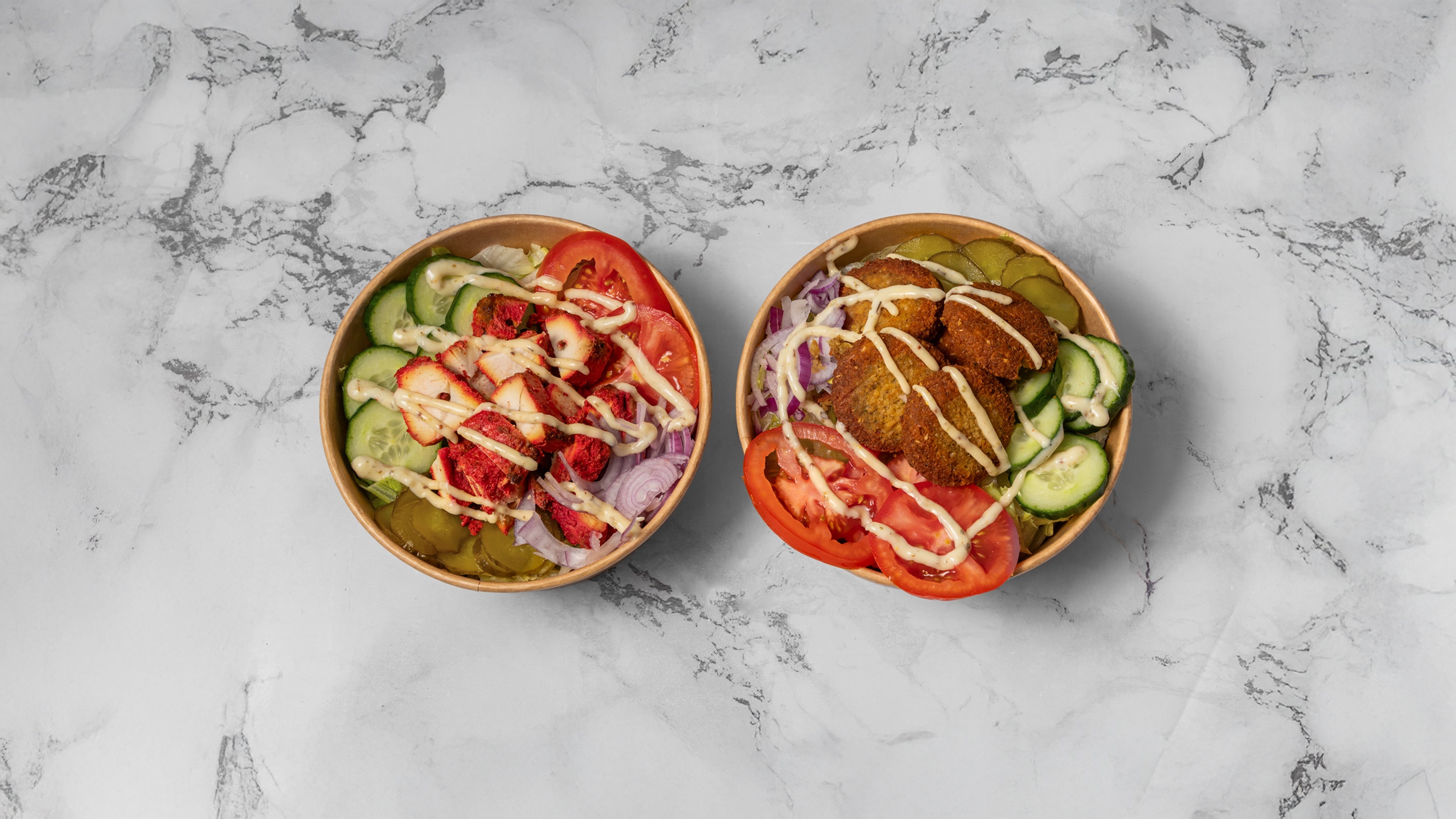 Poulet Tikka grillé, crudités fraîches, sauce maison.€10.50🌱 Salade Falafel