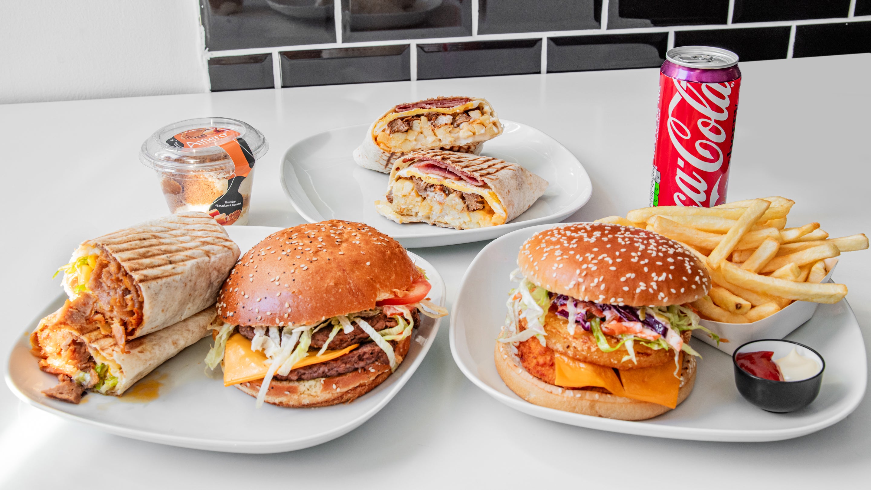 Tenders, cheddar, cheddar€6.50Crousty burger