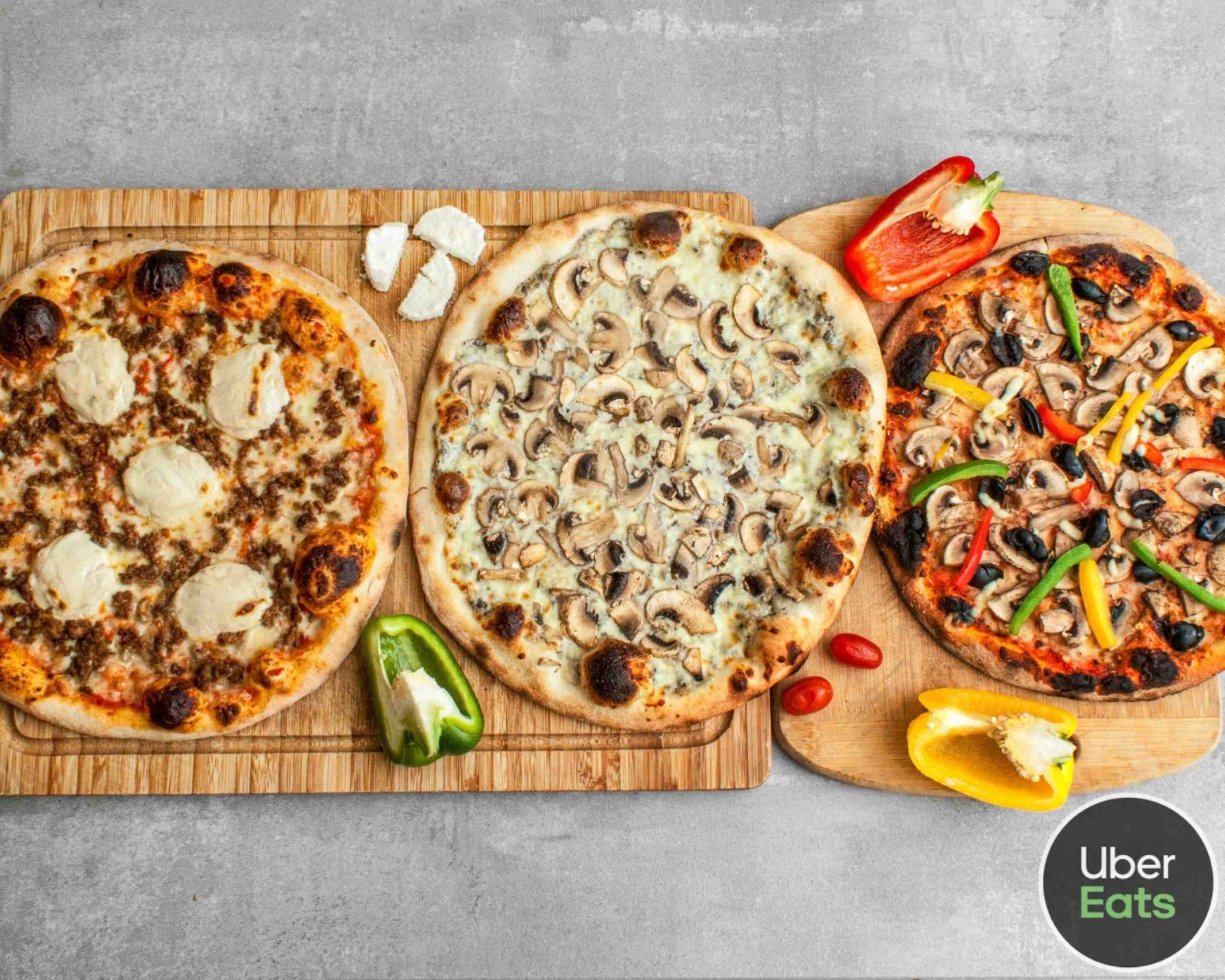 Une pizza généreuse garnie de viande hachée, poivrons, oignons, olives tranchées, mozzarella et emmental, sur base sauce tomate ou crème fraîche au choix.€9.00