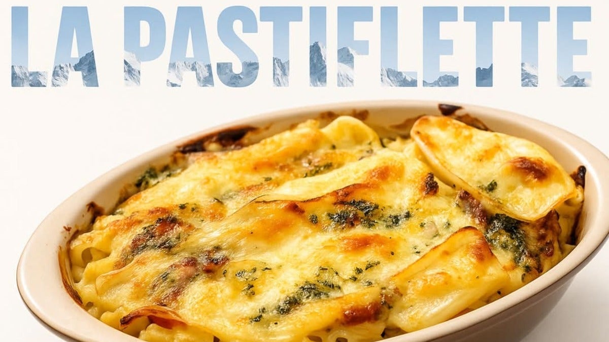 La Pastiflette version Ski d’Or, pour les Maîtres de la montagne : Macaronis, crème fraîche, oignons dorés, jambon fumé Speck, reblochon, raclette, bleu, chèvre, sel et poivre.€14.90