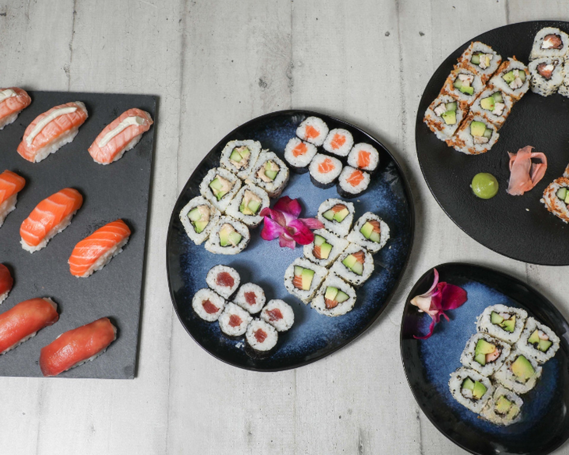 6 saumon fumé cheese, 6 saumon concombre avocat crispy et 6 poulet avocat crispy.€16.00