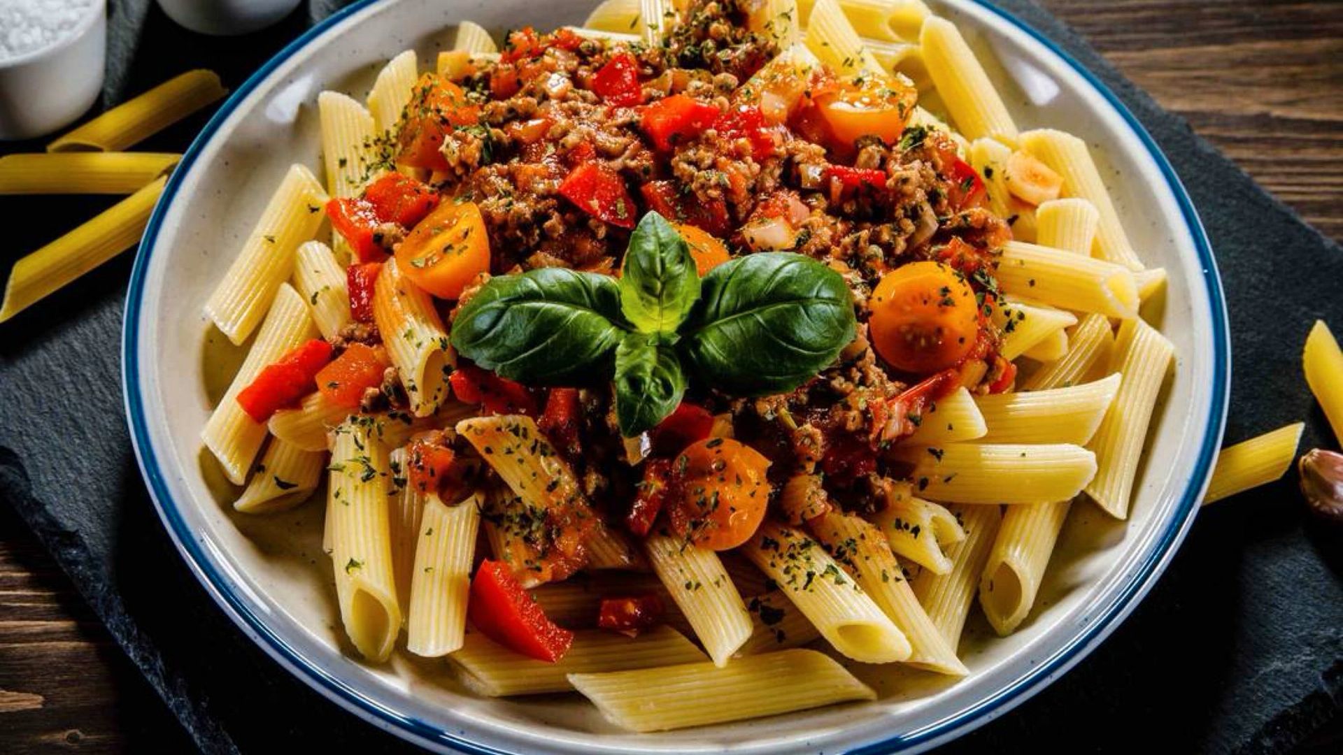 Pate pene,sauce crème légère maison , poulet,fromage boursin ,huile d’olive et ailée, et parmesan!€12.50Pasta Bolognaise🍝🥩