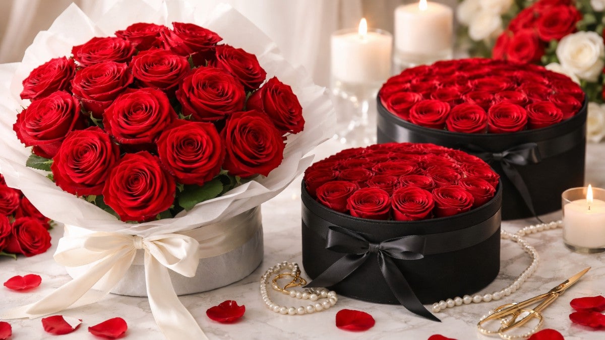 Une composition somptueuse de roses rouges profondes, sublimées par des roses ivoire et un délicat gypsophile. Passion Impériale incarne l’amour intense, le prestige et l’élégance absolue, enveloppé dans un écrin raffiné aux lignes modernes.€149.00