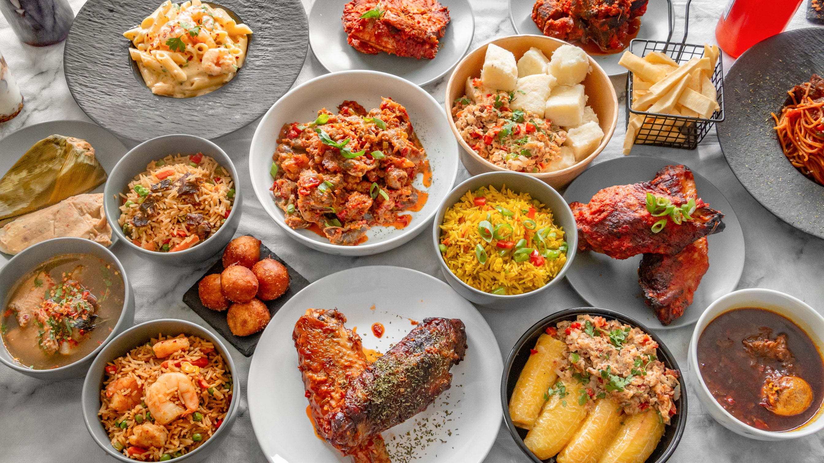 Pâte de manioc, sauce graine et viande.€18.90Foutou banane sauce gombo