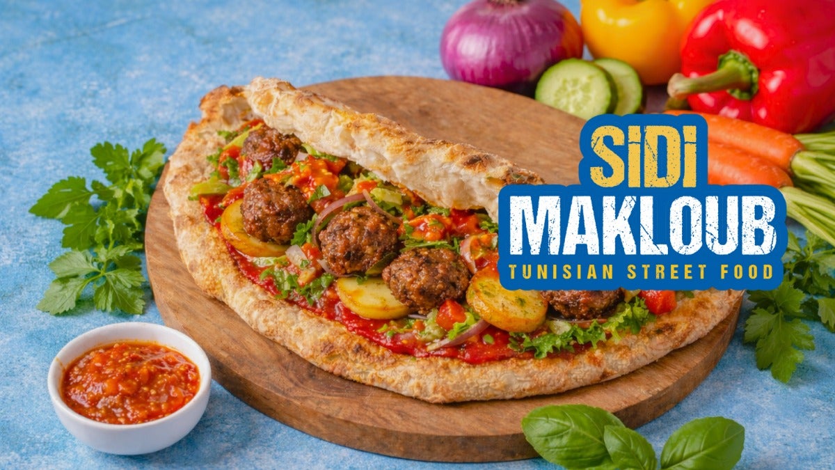 Sidi Makloub, un sandwich typiquement tunisien célèbre l’authenticité et la richesse des saveurs de la Tunisie à travers des recettes généreuses, préparées avec des ingrédients frais et soigneusement sélectionnés, agrémentées de notre touche tunisienne unique. (Viande origine UE eu hors UE Halal)