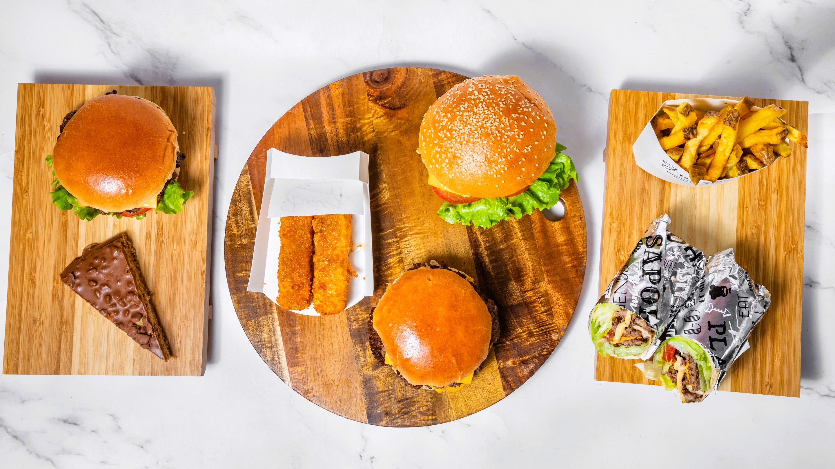 Un hamburger est un sandwich composé de deux tranches de pain rond renfermant un steak haché, souvent accompagné de fromage, de légumes (salade, tomate, oignon) et de sauces.