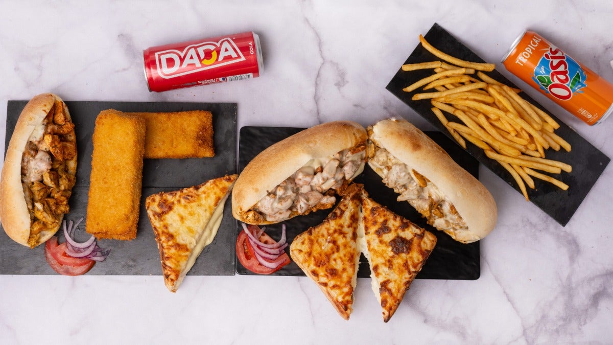 Un menu double pané, made by LaroucNight. Notre spécialité, 2 panés une tortilla passée à la friture avec à l'intérieur des morceaux de poulet marinés au curry et du fromage, le tout bien croustillant & accompagné d'une portion de frite et une boisson.€14.99