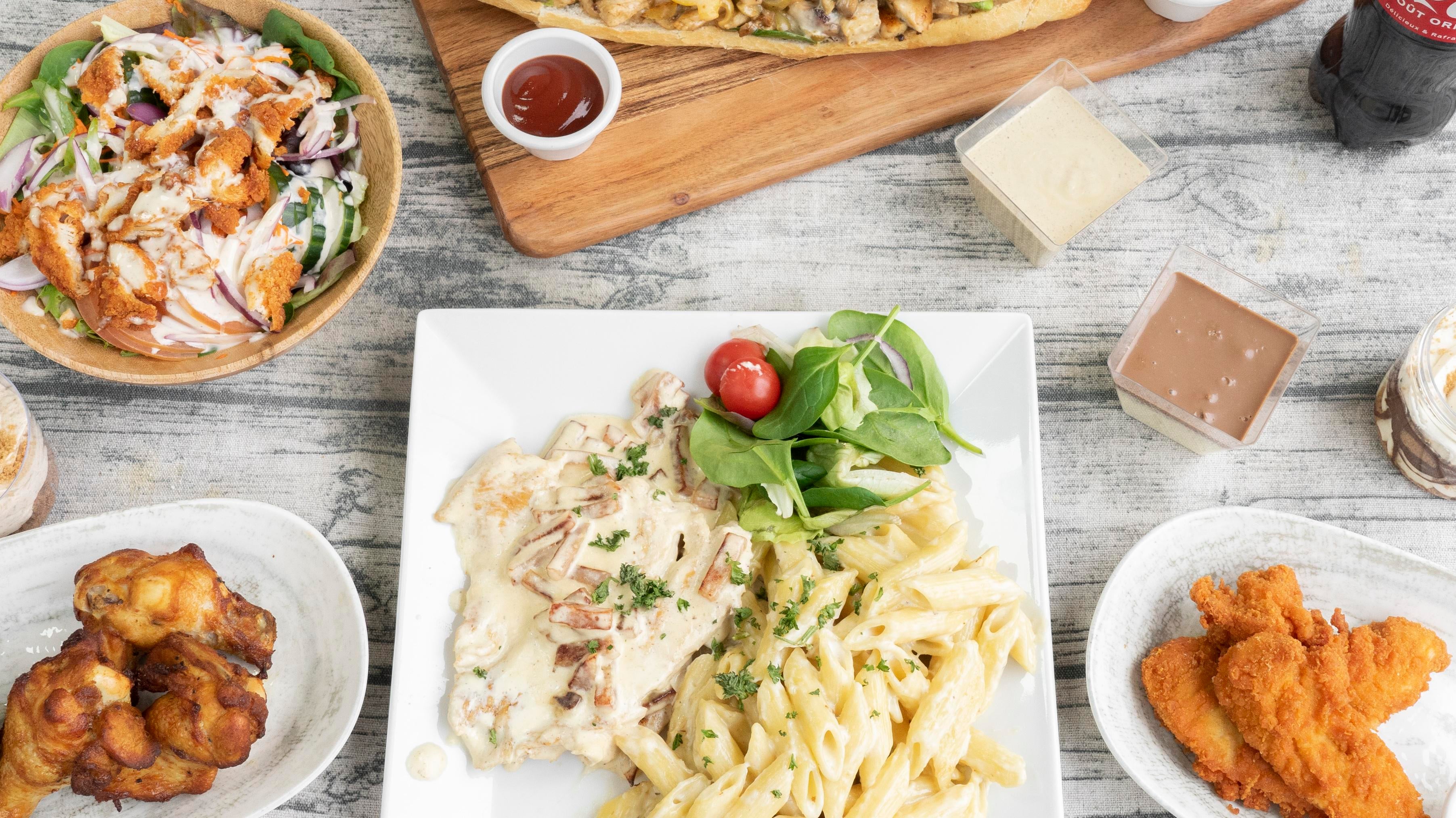 Une viande au choix, sauce fromagère, fromage gratiné au four et mozzarella frites.€12.00Deux viandes