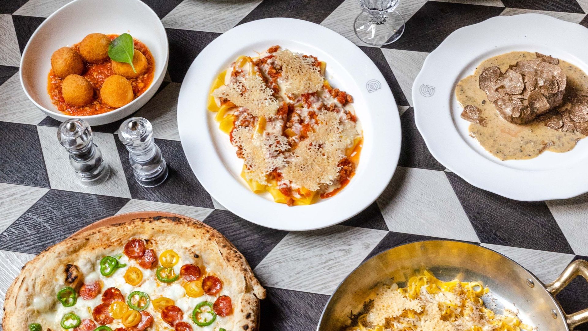 Mezzi rigatoni au ragôut de boeuf à la Bolognese€29.00Pomo d'Oro & Stracciatella