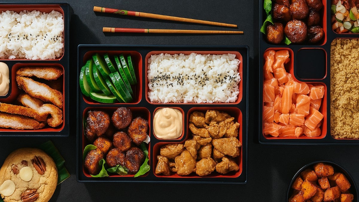 Bento Afro-Asiatique:Crevette Poivre et SelBananes PlantainsRiz rond japonaisMangue verte et Pousses de soja€16.90