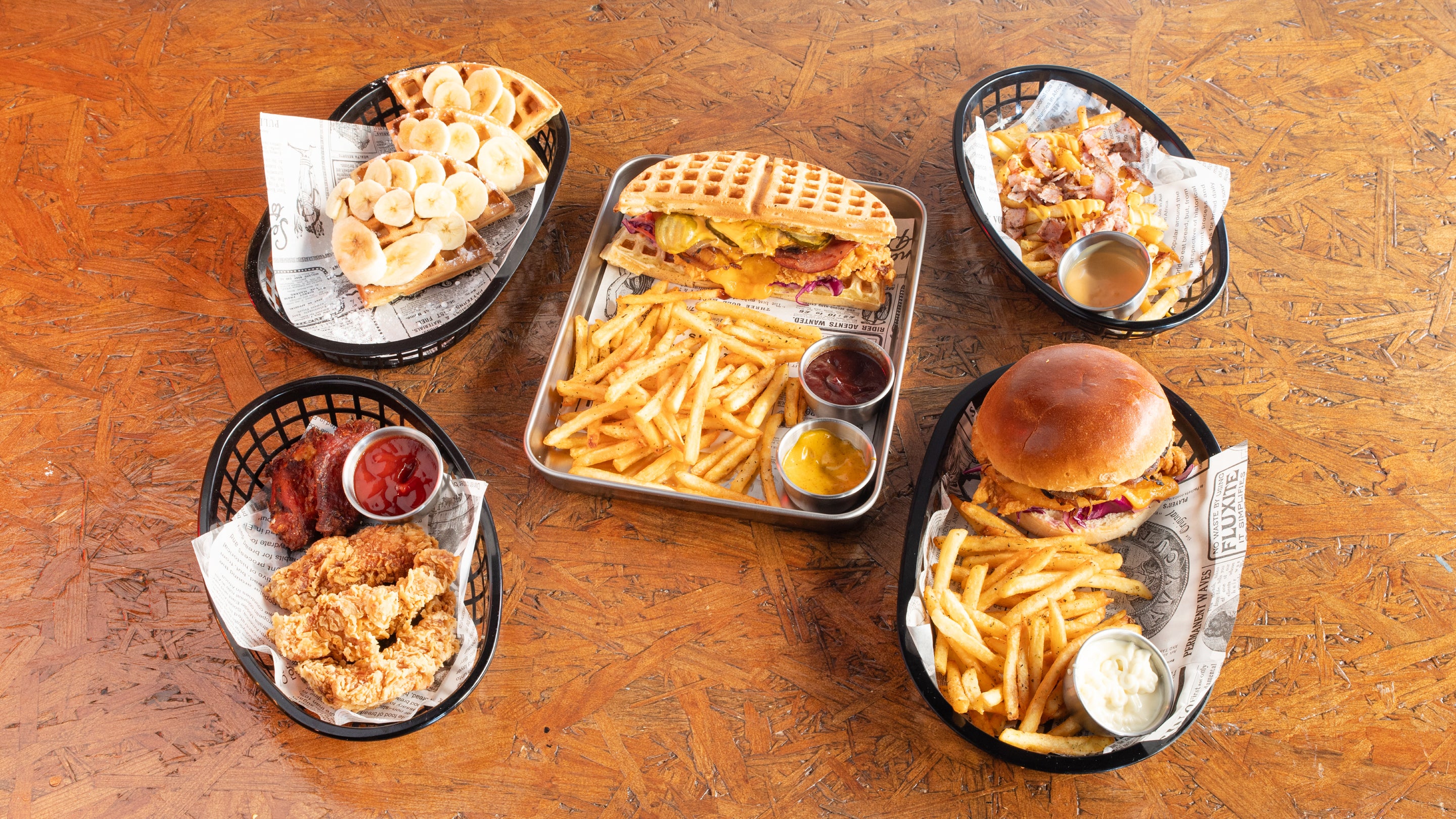 Ajoute frites ou coleslaw + boisson et transforme ton waffle burger ou burger en vrai repas US.