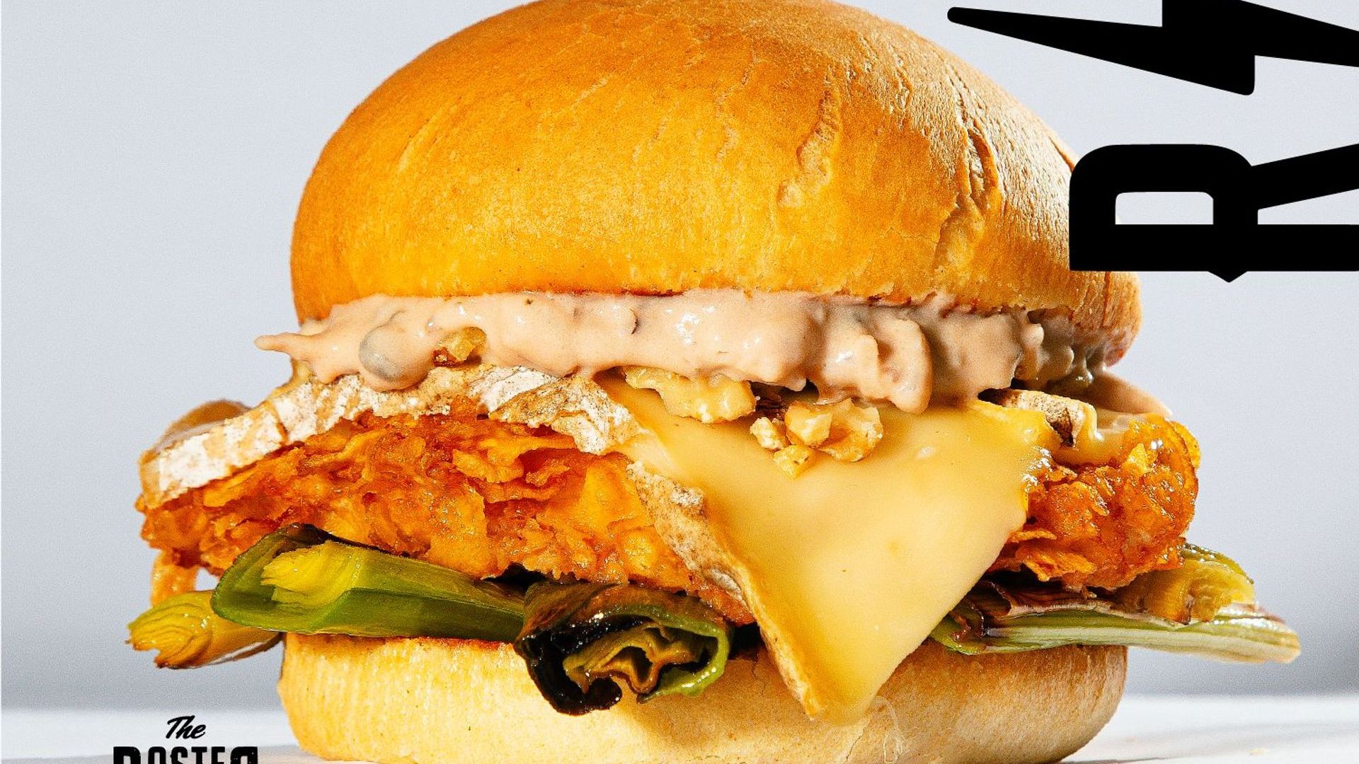 Poulet frit, Cheddar, Salade, #Sauce Roster€7.00