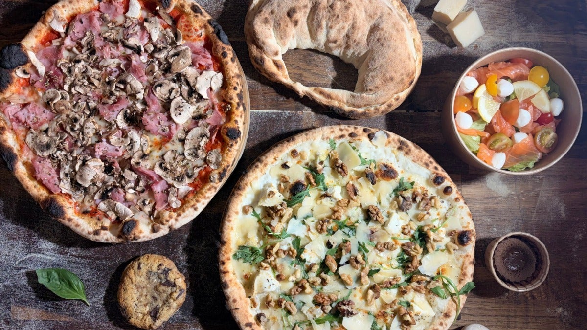 Pizza cuite au feu de bois. Pâte maturée. Sauces maisons.
