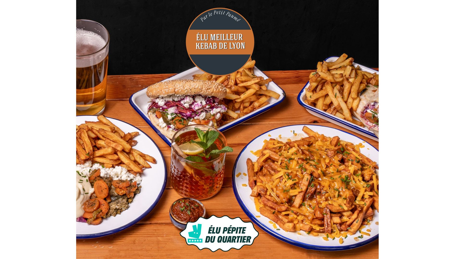 Élu meilleur kebab de Lyon par le Petit Paumé La Broche c'est notre recette du Kebab gourmet 100% maison : Poulet français mariné 24h et grillé sur broche verticale, légumes marinés et sauce maison, frites de pommes de terres fraîches avec mayonnaise et ketchup maison! Existe en Version Végétarienne à la feta & Légumes marinés maison