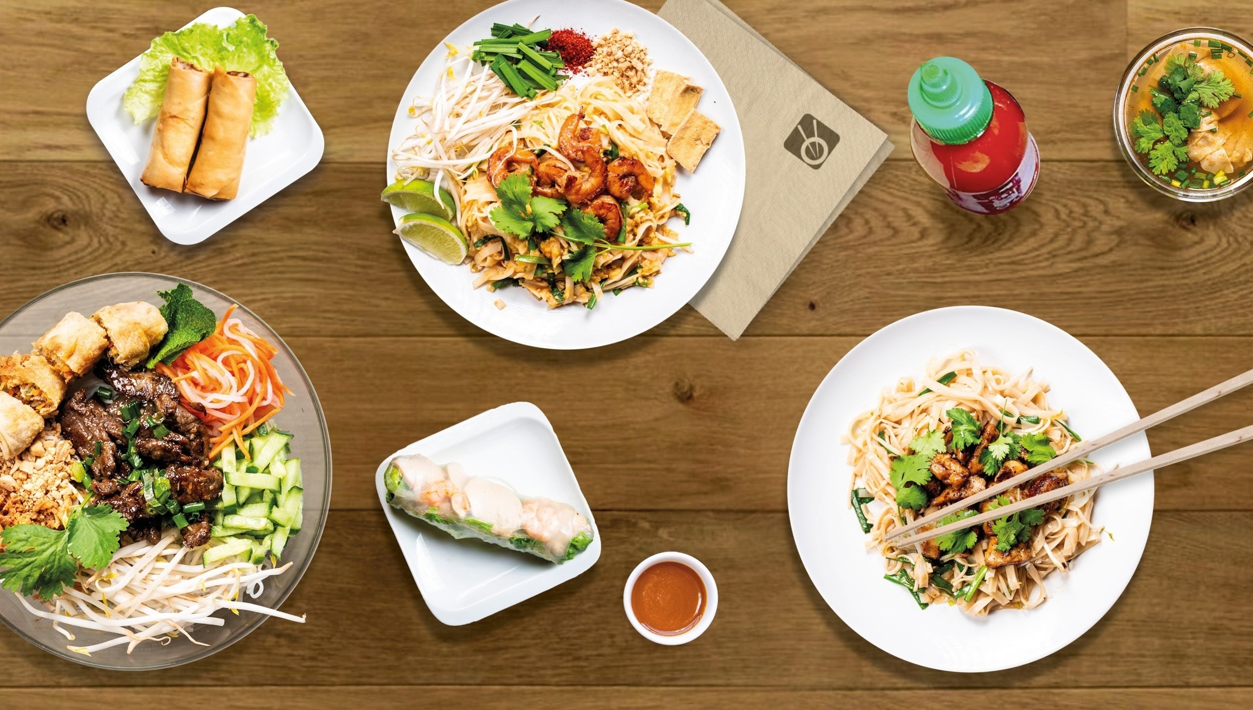Le mariage parfait : nouilles sautées et crevettes fondantes. Des pâtes de riz sautées au wok dans notre sauce pad thaï maison, avec une omelette moelleuse, du soja croquant, une touche de citron, des oignons frits croustillants et de la ciboulette fraîche. Le tout sublimé par des crevettes marinées dans une sauce nuoc-mâm au gingembre et à l’échalote, saisies au wok avec une touche de sucre caramélisé.€11.90BO BUN - BŒUF LOC LAC 🐂