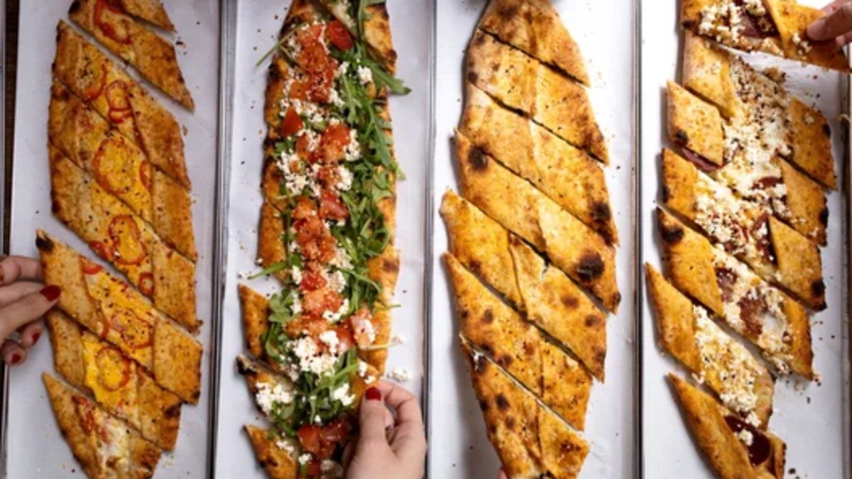 Pâte à pain traditionnelle faite maison. Tous nos pides sont saupoudrés de sésame et nigelle. Les fromages Kasar et Beyaz Peynir (féta turc) sont pasteurisés et à base de lait de vache