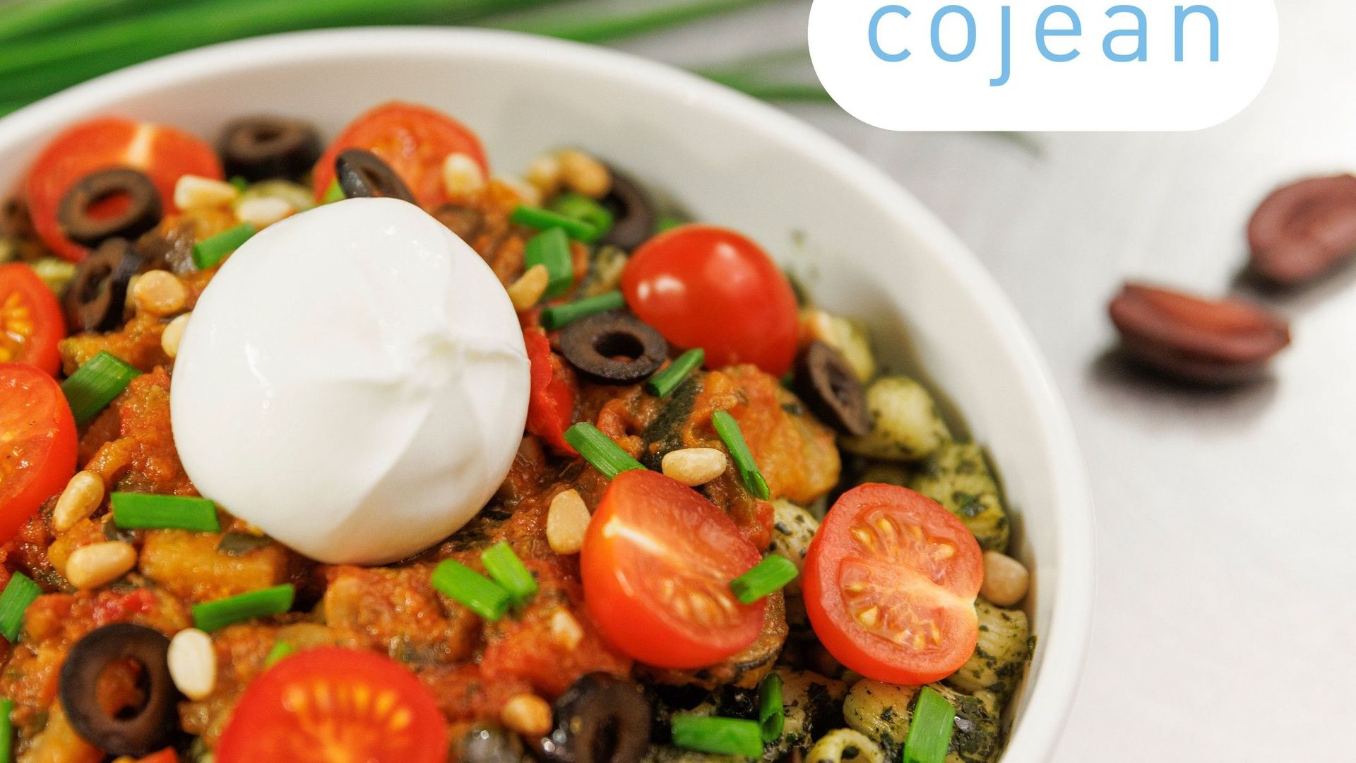 Pâte pipe rigate, burrata, ratatouille, tomate cerise, olive noire à la grecque, pignon de pin, pesto de basilic.€10.80VegetarianBurrata légumes grillés - Format S
