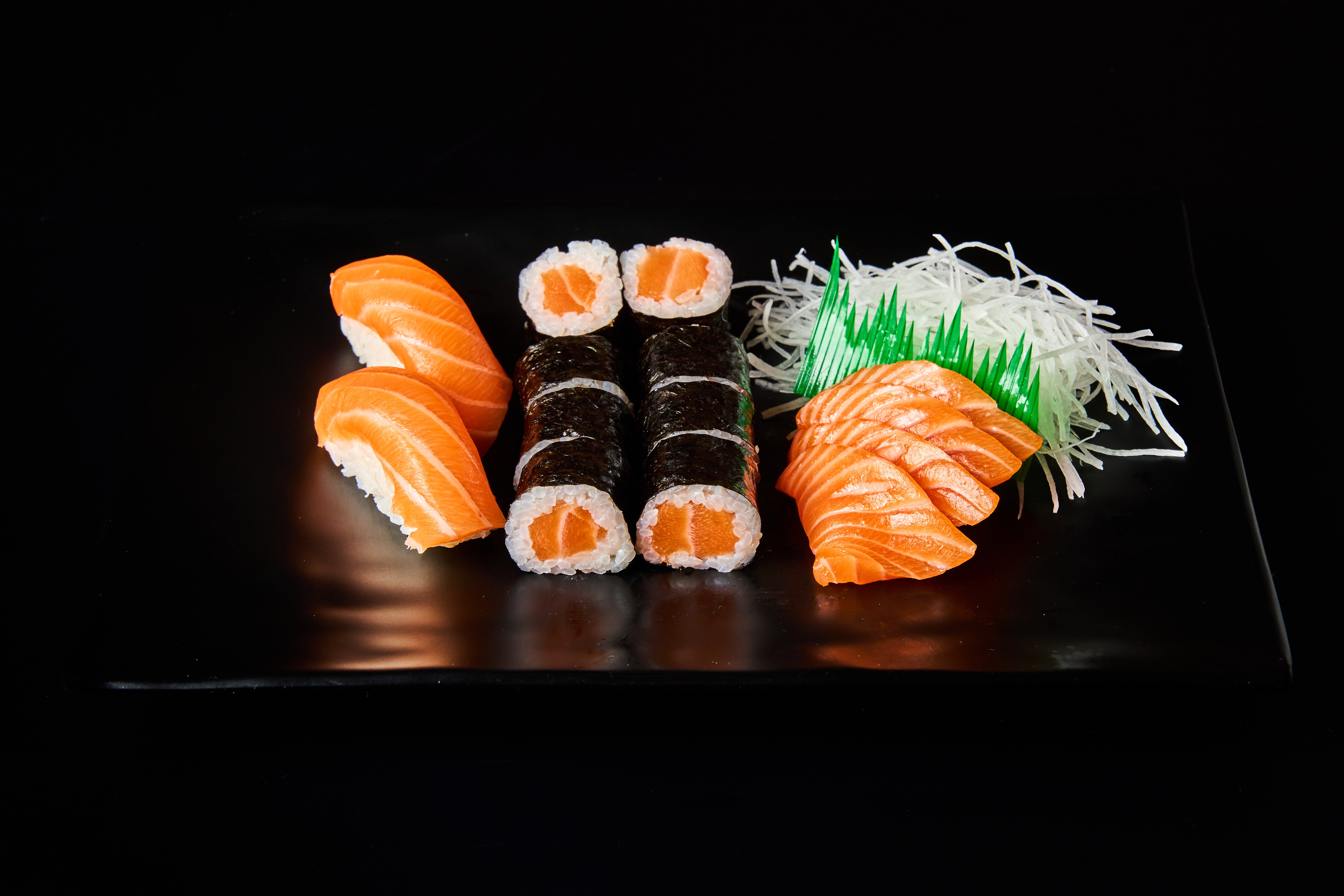 8 Maki saumon, 4 sashimi saumon et 2 sushi saumon€14.90Plat 4