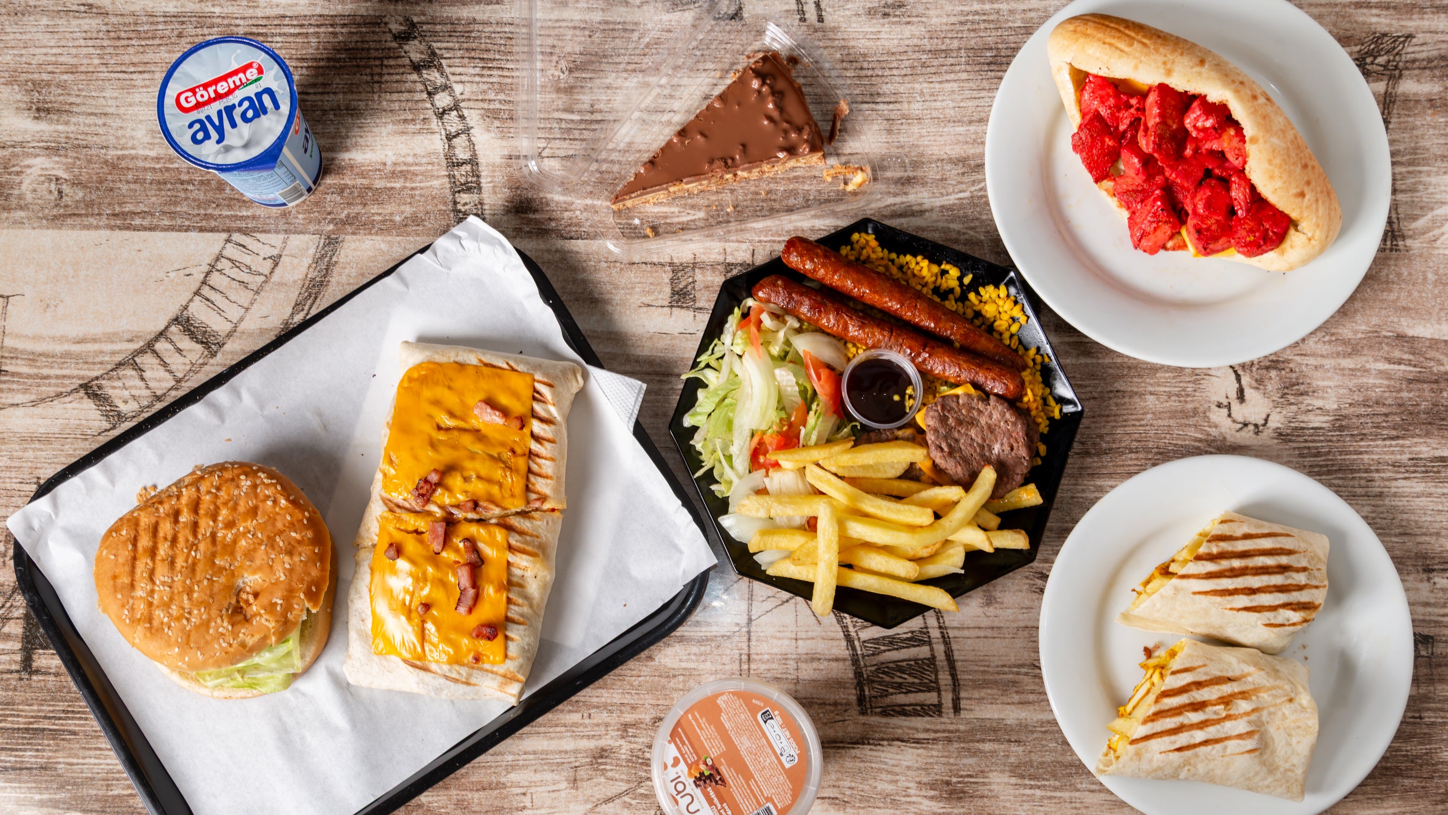 Avec frites à l'intérieur, sauce maison, 5 viandes ,4 tortilla et 1 sauce au choix€26.00
