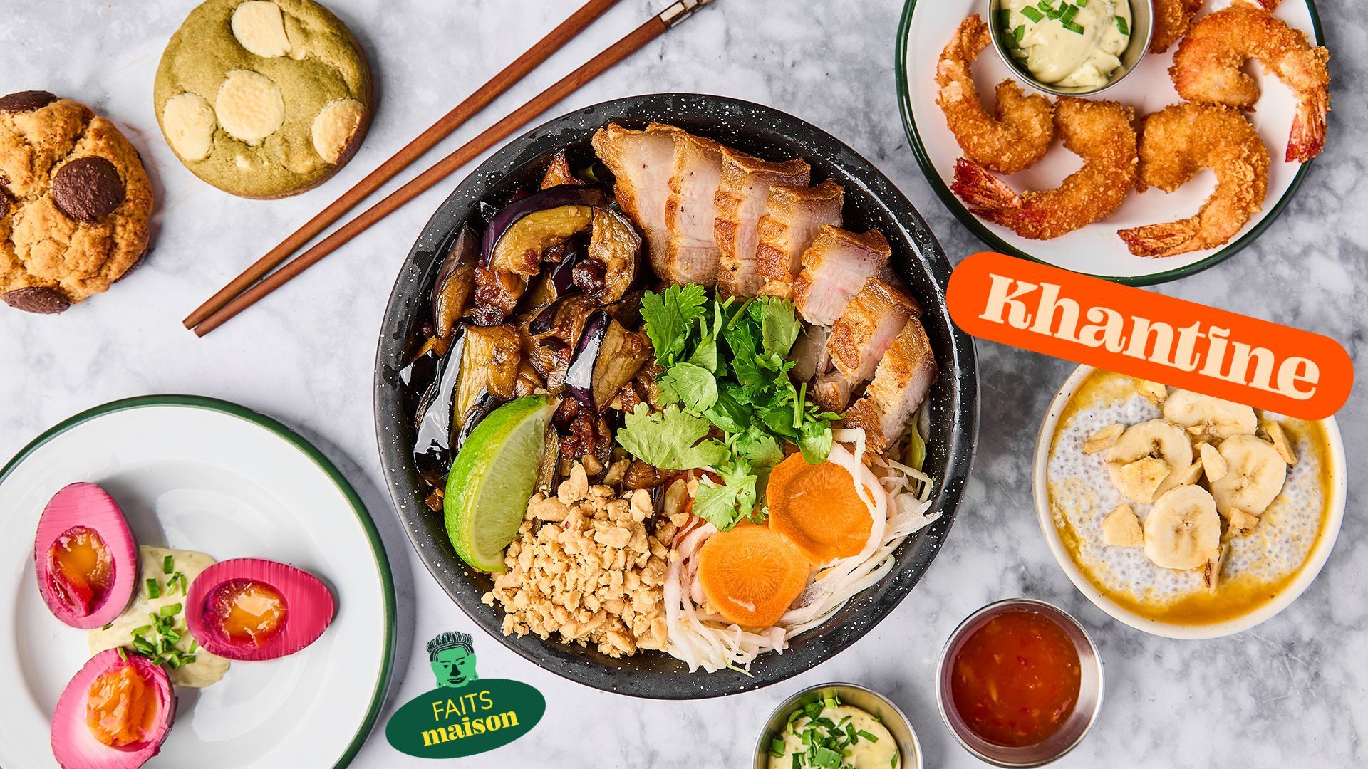 Highly rated· Choisissez votre base, votre garniture de légumes et une protéine. Nous ajoutons dans votre Khantine une garniture de coriandre fraîche, des cacahuètes, des choux&carottes et une sauce maison.Double portion possible pour les gourmands !€11.12€13.90