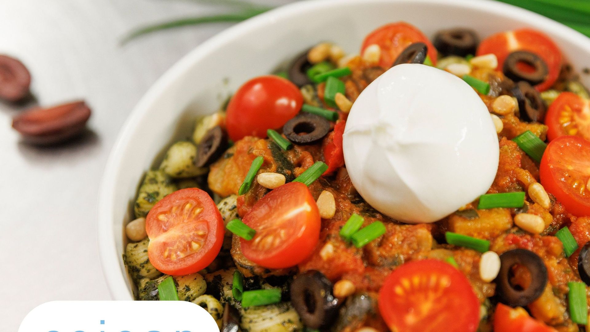 Burrata crémeuse, ratatouille au pesto de basilic, olive noire à la grecque, pignon de pin.€5.90Vegetarian