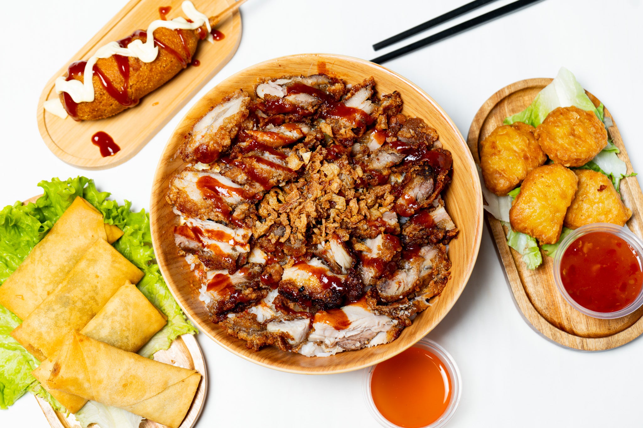 Poulet hallal croustillant dorĂ© Ă la perfection, servi avec du riz parfumĂ©, des oignons frits croustillants et une sauce maison tamarin miel onctueuse. Un plat gourmand et gĂ©nĂ©reux.âŹ11.90Buy 1, get 1 free
