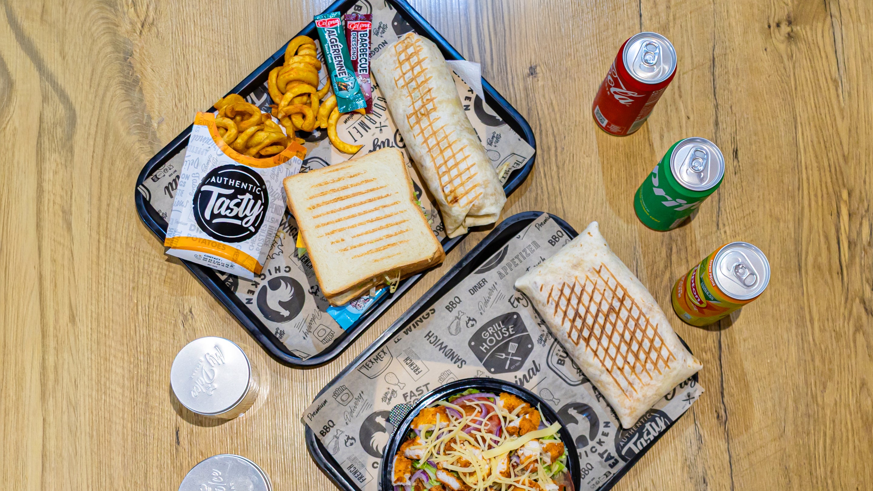 3 STEAKS 45GR. SAUCE KETCHUP. MAYONNAISE CHEDDAR, SALADE TOMATE OIGNONS7,90 €WRAP CHICKEN