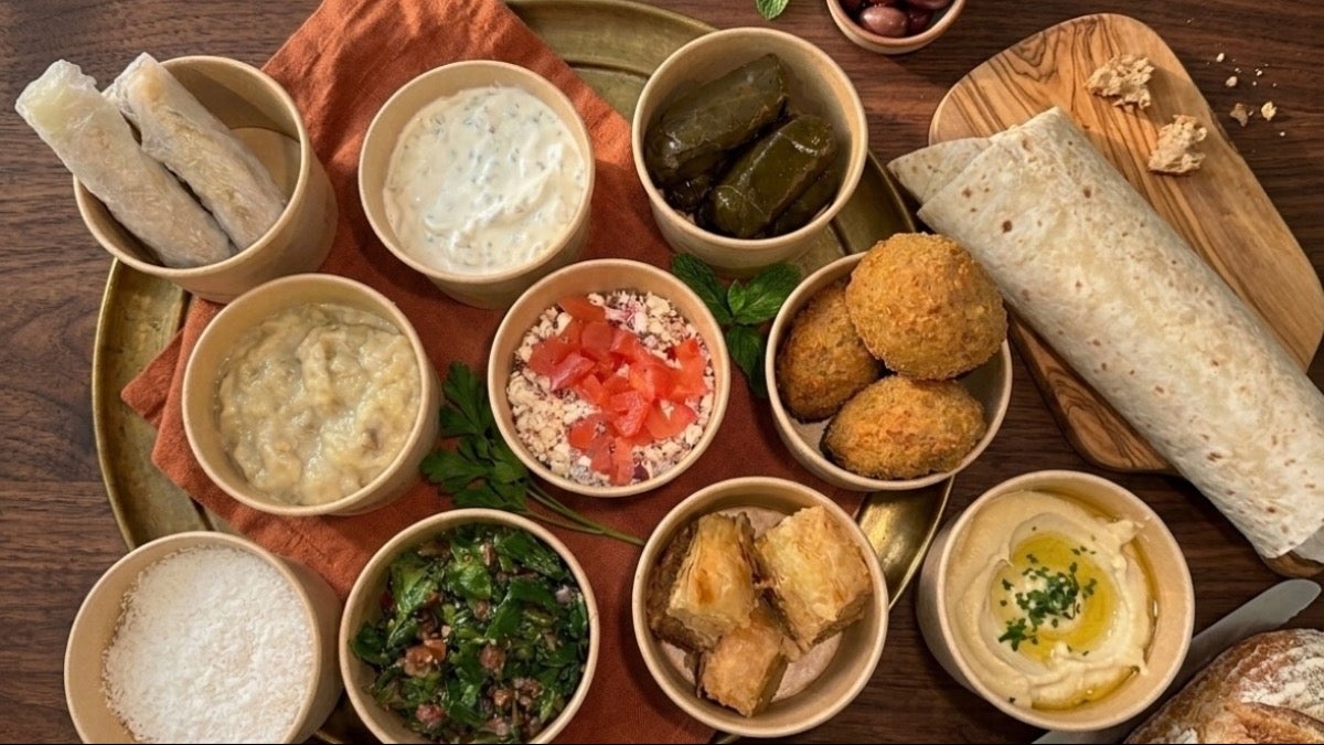 Houmos, Moutabal, taboulĂ©, fĂȘta au thym, labnĂ©, feuille de vigne, falafel, feuilletĂ©s aux lĂ©gumes, pain pita, flan au lait dâamande et baklawa.49,90 âŹVĂ©gĂ©tarien3