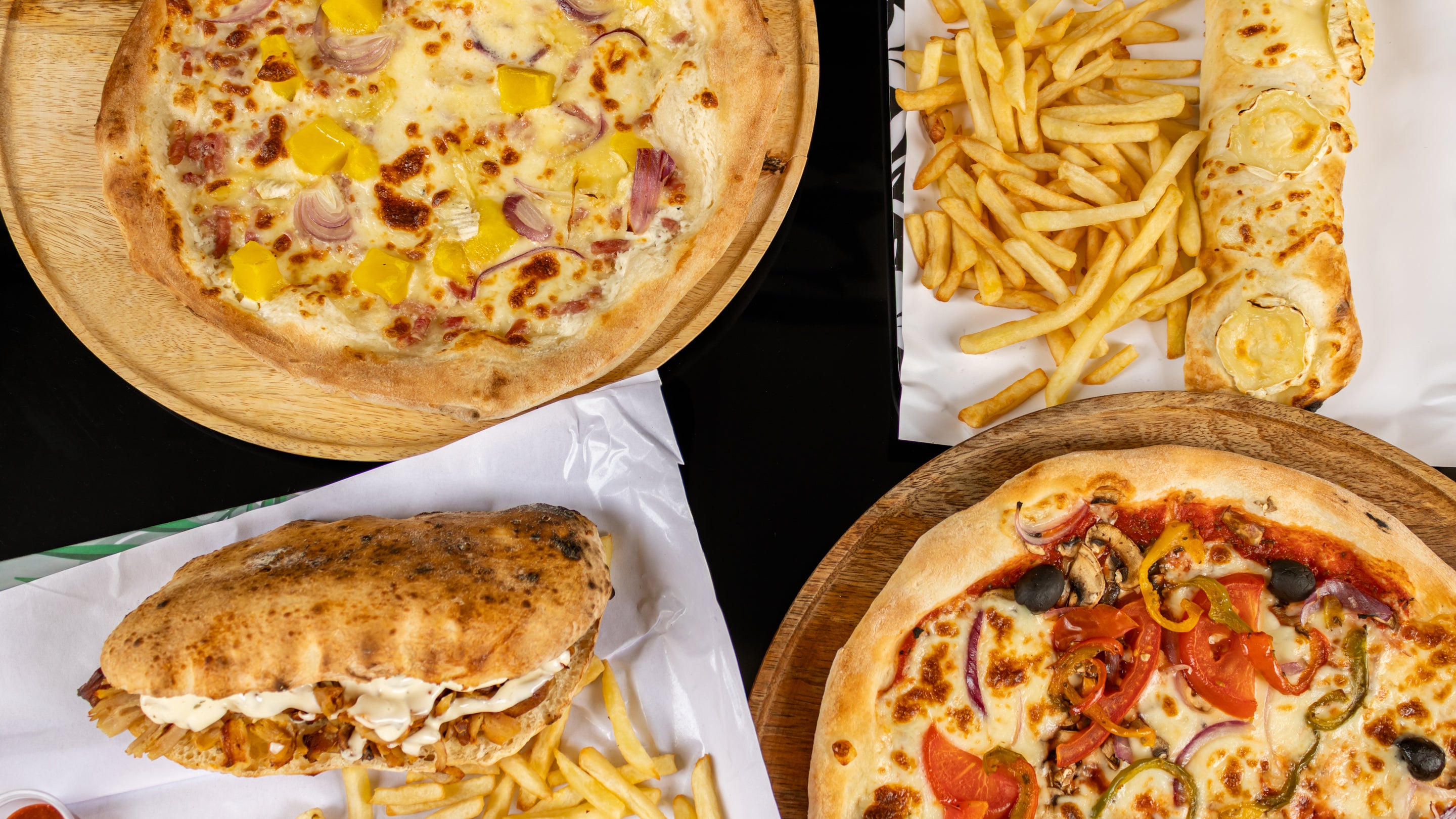 Pâte a pizza fourrée, 1 viande au choix, mozzarella et emmental ainsi que 2 légumes au choix.Servi avec frites et boisson 33cl au choix.13,00 €