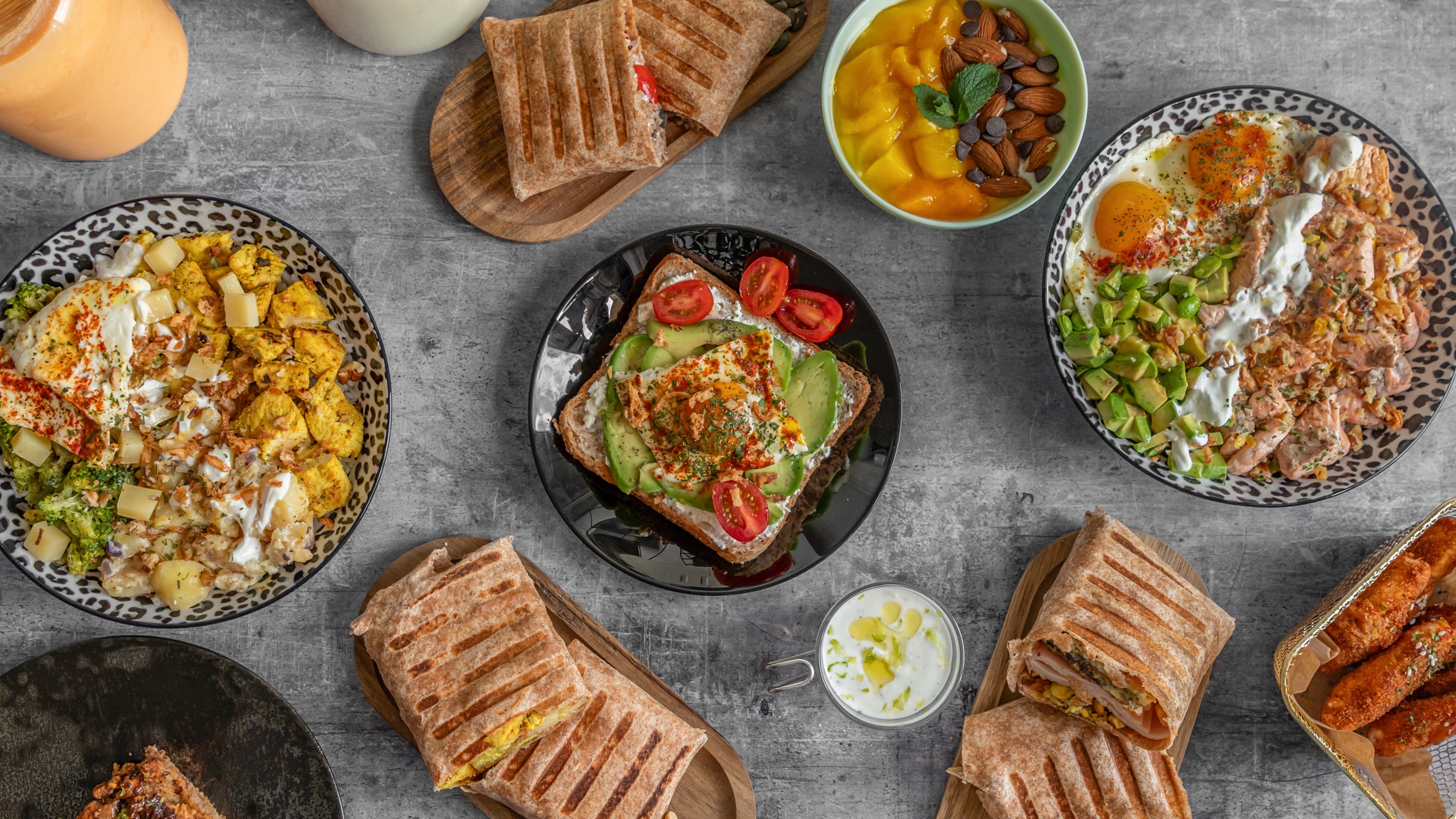 2 mini avocado toast 2 banana breads 2 mini chicken Goat wrap 1 smoothie ou milkshake du moment 50cl29,90 €