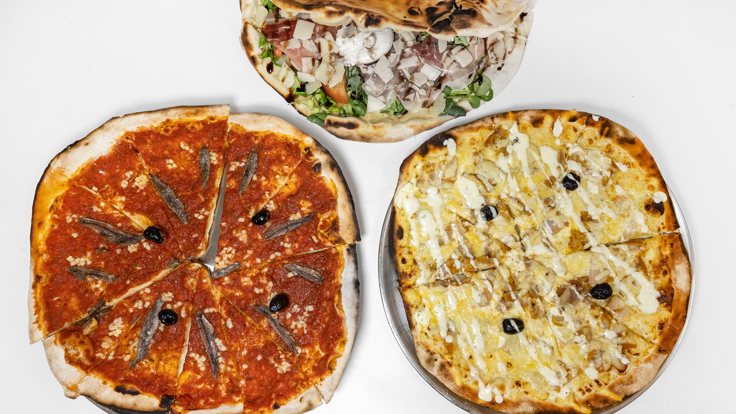 Jambon Cru, Parmesan, Gorgonzola, Mozza, Mascarpone, Basilic