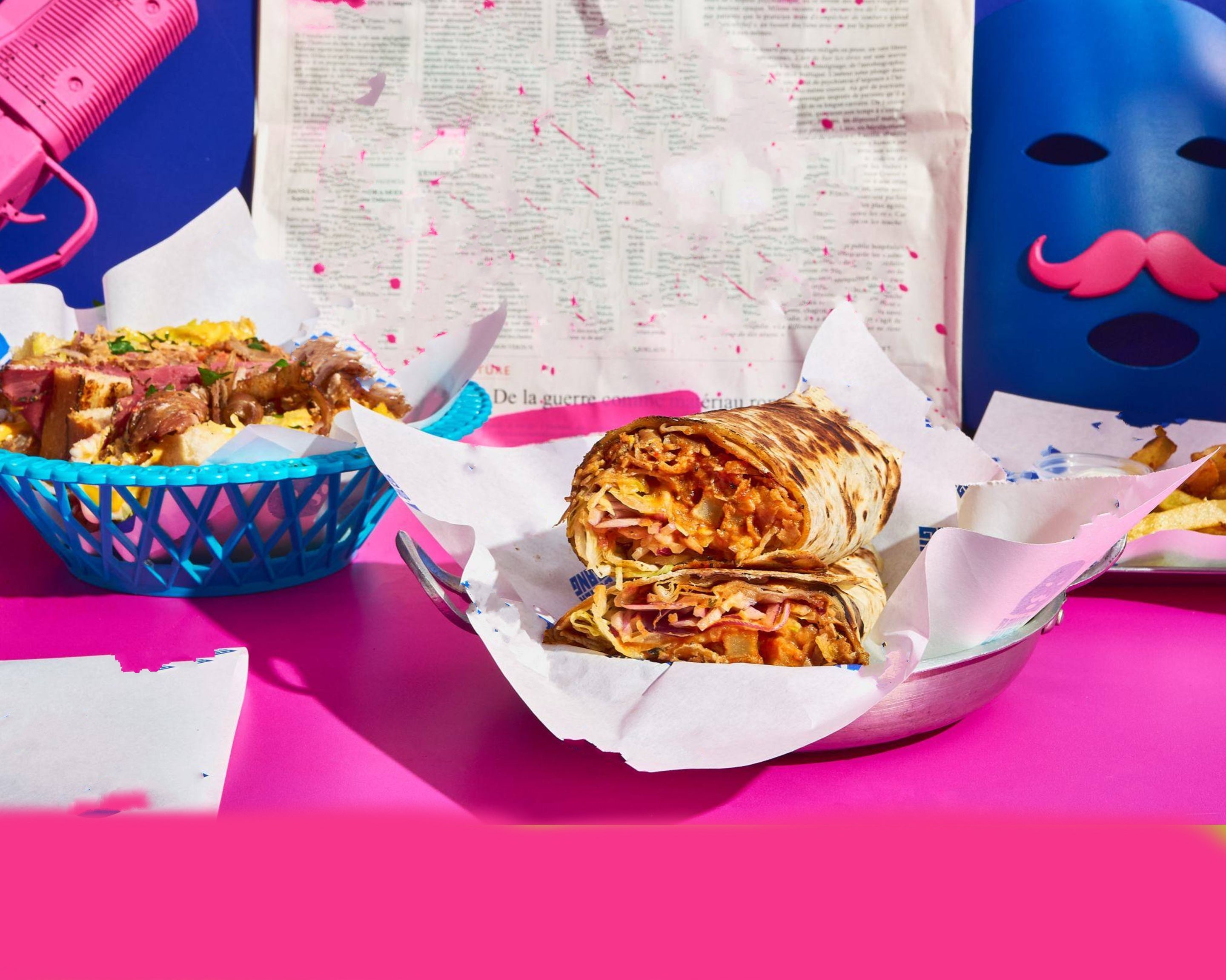 🌯 tortilla chaude & savoureuse🍗 Double Viandes au choixđŸ„— CruditĂ©s fraĂźches & croquantes💧 Sauce au choix➀ Le double de saveurs, pour le double de plaisir !