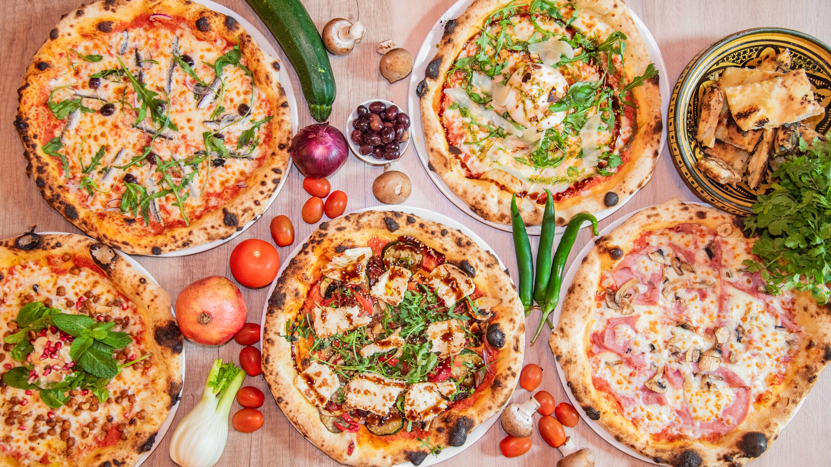 Base tomate, mozza, pois chiche, houmous, tomate, menthe, zaatar libanais