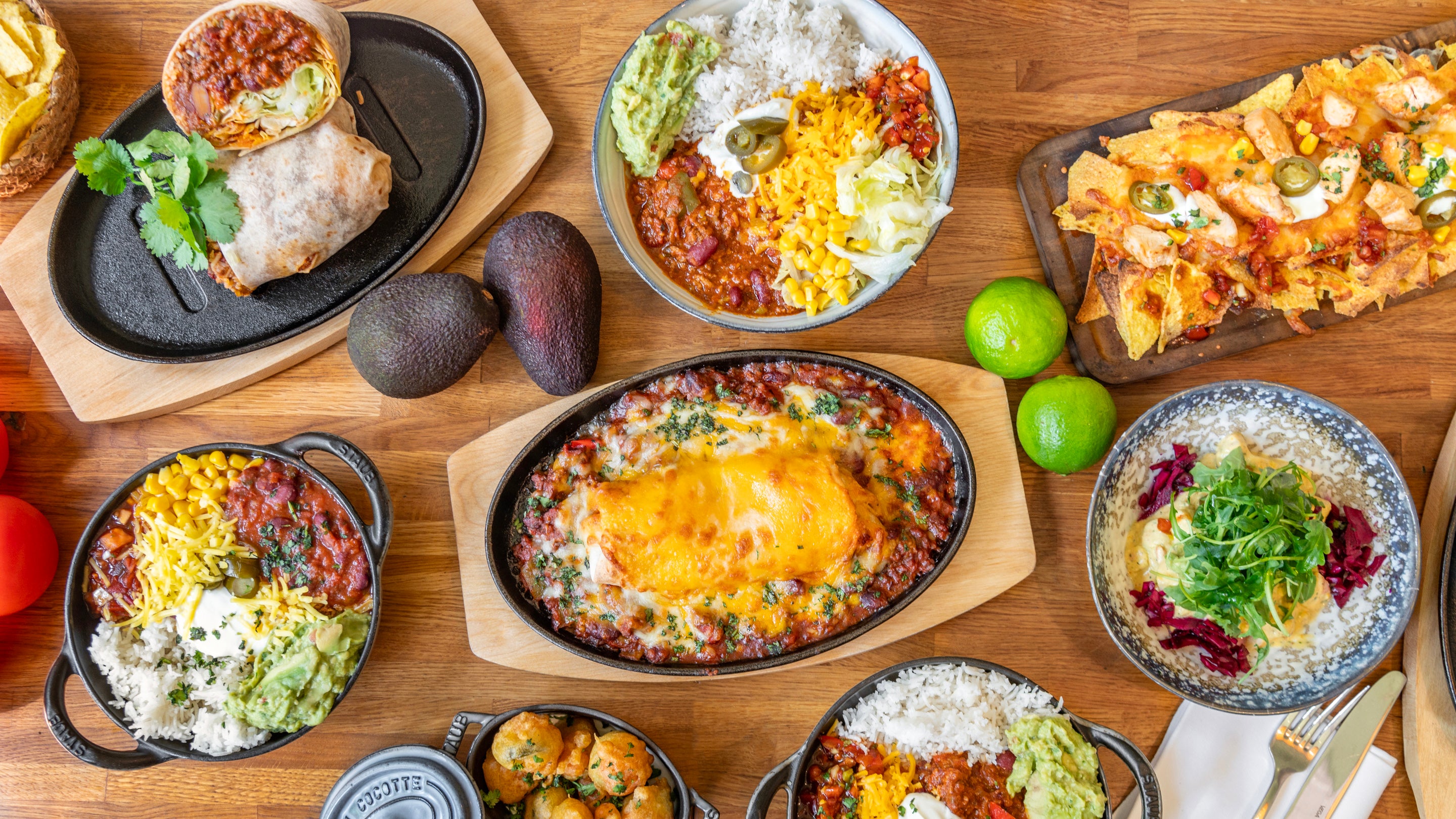 Guacamole, chilli de bœuf, haricots rouges, poivrons verts, poivrons rouges, tomates, oignons, fromage, Cheddar, jalapenos, crème fraîche, riz au citron vert, coriandre, salsa pico de gallo aux tomates, oignons, poivrons, haricots rouges, mélange d'épices tex-mex, laitue iceberg croquante.16,90 €