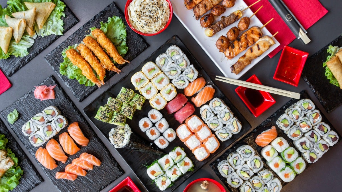 2 Soupes / 2 salades / 2 riz / 10 sushi variés / 6 california maki / 6 maki / 30 sashimi assortis58,50 €MENU TOKYO