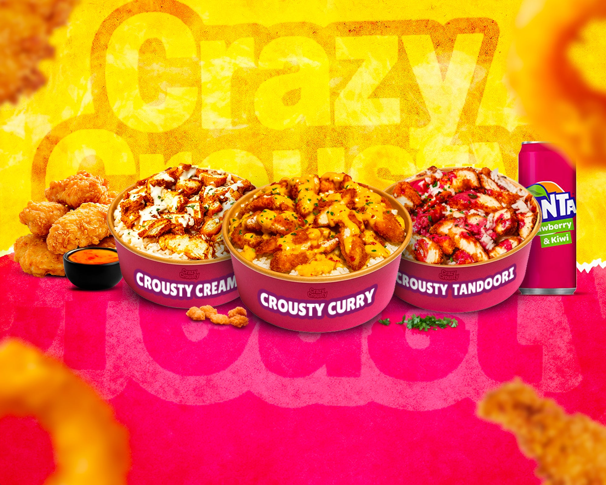 Bienvenue chez Crazy Crousty Un large choix de fast-food halal. Poulet frit croustillant et plats thaïlandais aux saveurs vibrantes. Un plaisir à chaque bouchée !Frais de livraison offerts