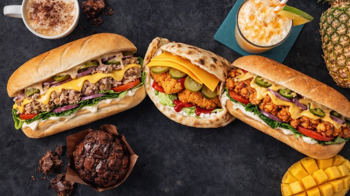 Tenders de poulet, cheddar, oignions rouge, pickels, salade, tomate, mayonnaise, ketchup