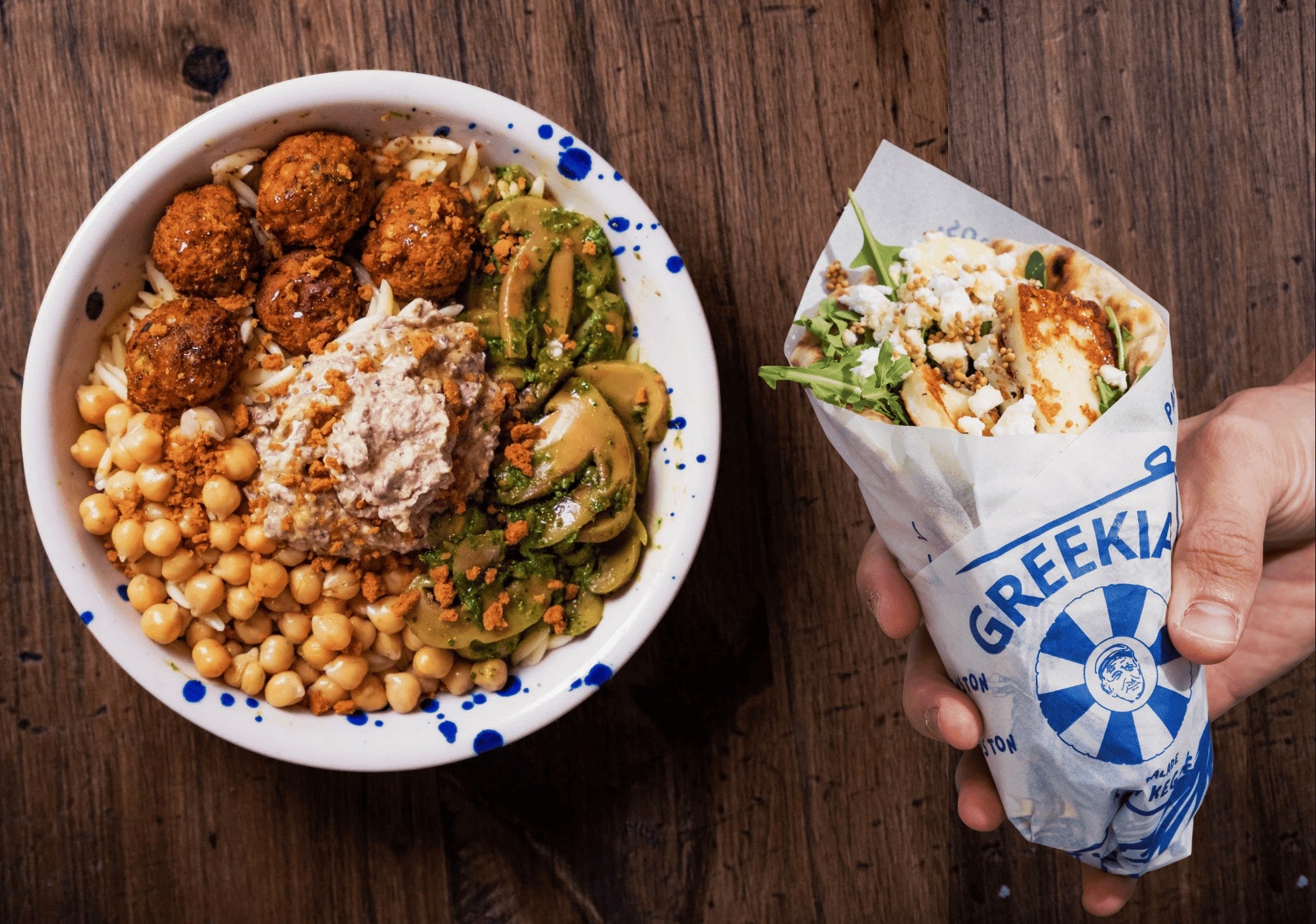 Roquette, tzatziki, halloumi grillé, pastèque, oignons rouges, feta, noix, miel & huile d'olive14,60 €BOL GREEKIA