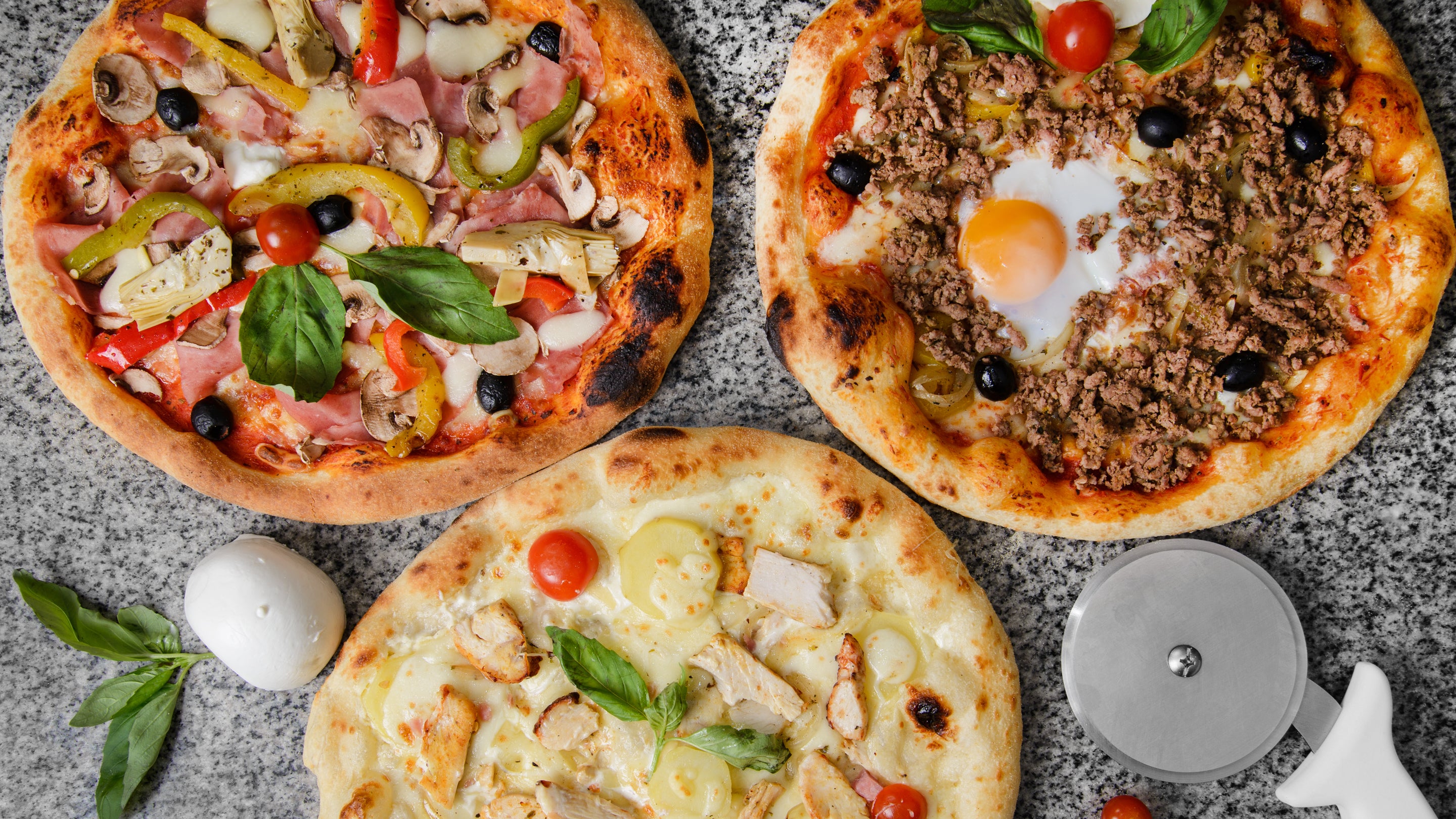 Base tomate, fromage, oeuf, jambon, viande hachée, thon12,00 €Neptune