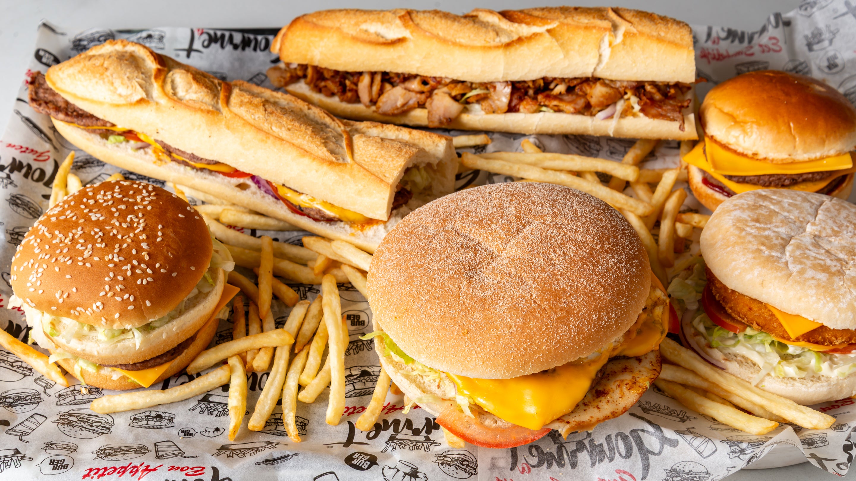 Pain Burger XL, Œuf, 3 steak, 3 cheddar, poulet fumé, sauce au choix9,00 €Sandwich kefta