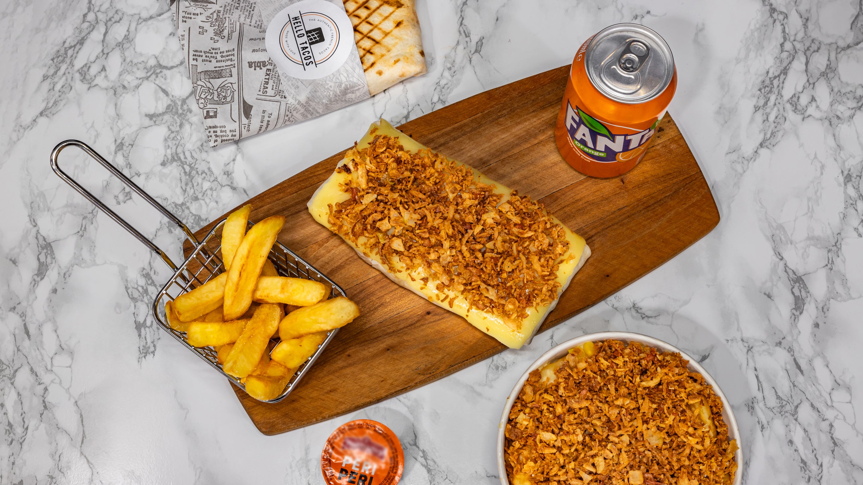 🟣 Fish, sauce tartare, frites & sauce gruyère maison, cheddar gratiné au four19,36 €