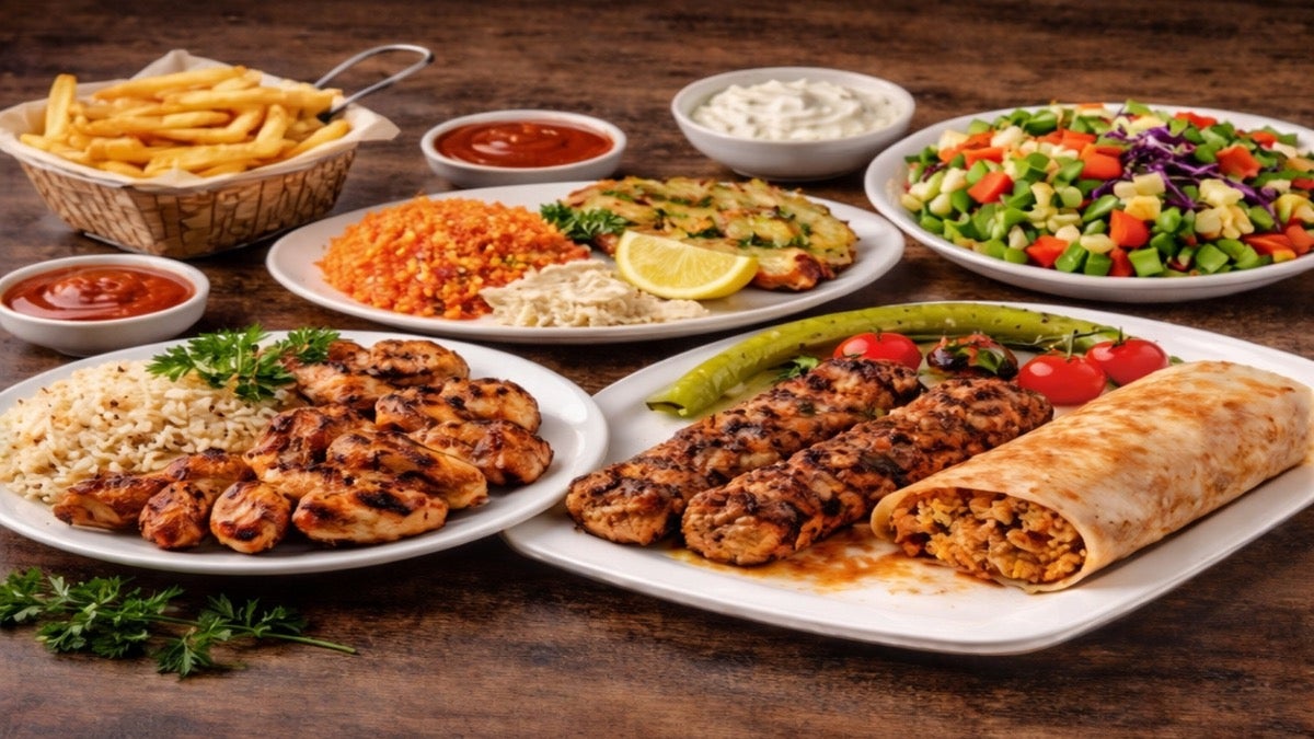 Agneau grillé, accompagné de boulgour, frites, salade composée et sauces au choix.18,00 €🍽️ Assiette kefta