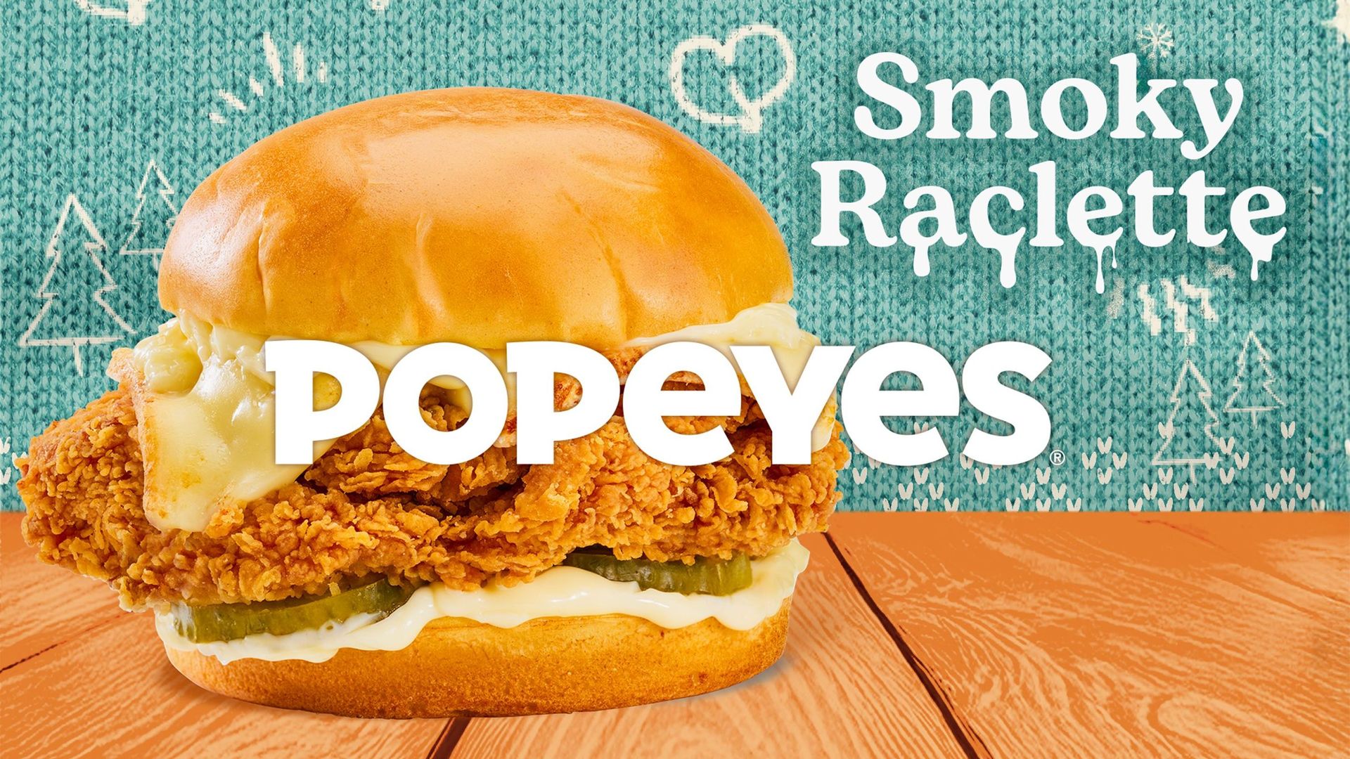 Généreux filet de poulet mariné pendant 12 heures dans notre mélange d’épices cajun, pané à la main et frit sur place. Le combo gourmand ? Des pickles, de la mayonnaise et un bun brioché toasté à tomber avec deux tranches de bacon de porc. LA référence du sandwich au poulet Popeyes venue tout droit de Louisiane.€11.75PopularSmoky Raclette