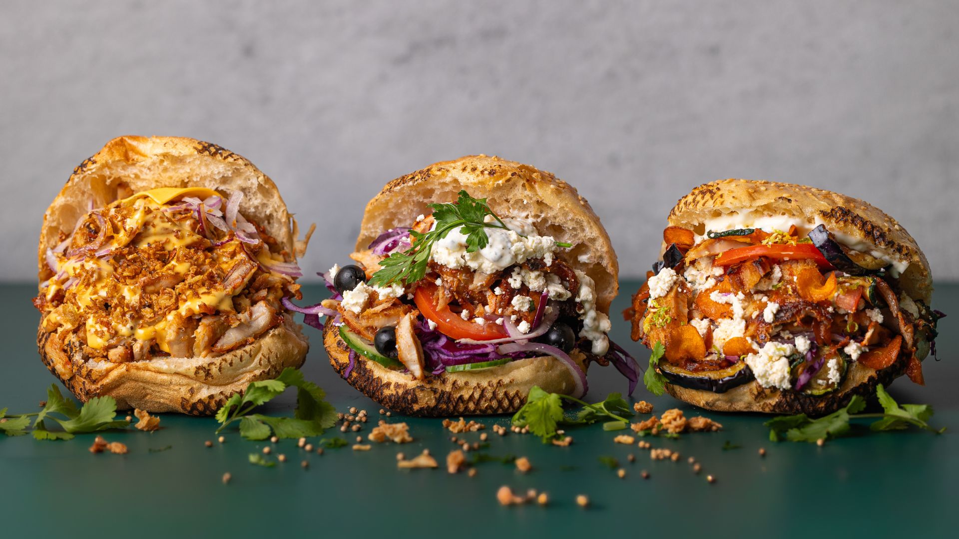 Pain grillé à la flamme, sauce au choix, viande de kebab faite maison marinée 12h, cheddar et oignons crispy, coslaw citronné11,90 €Veggy Gou