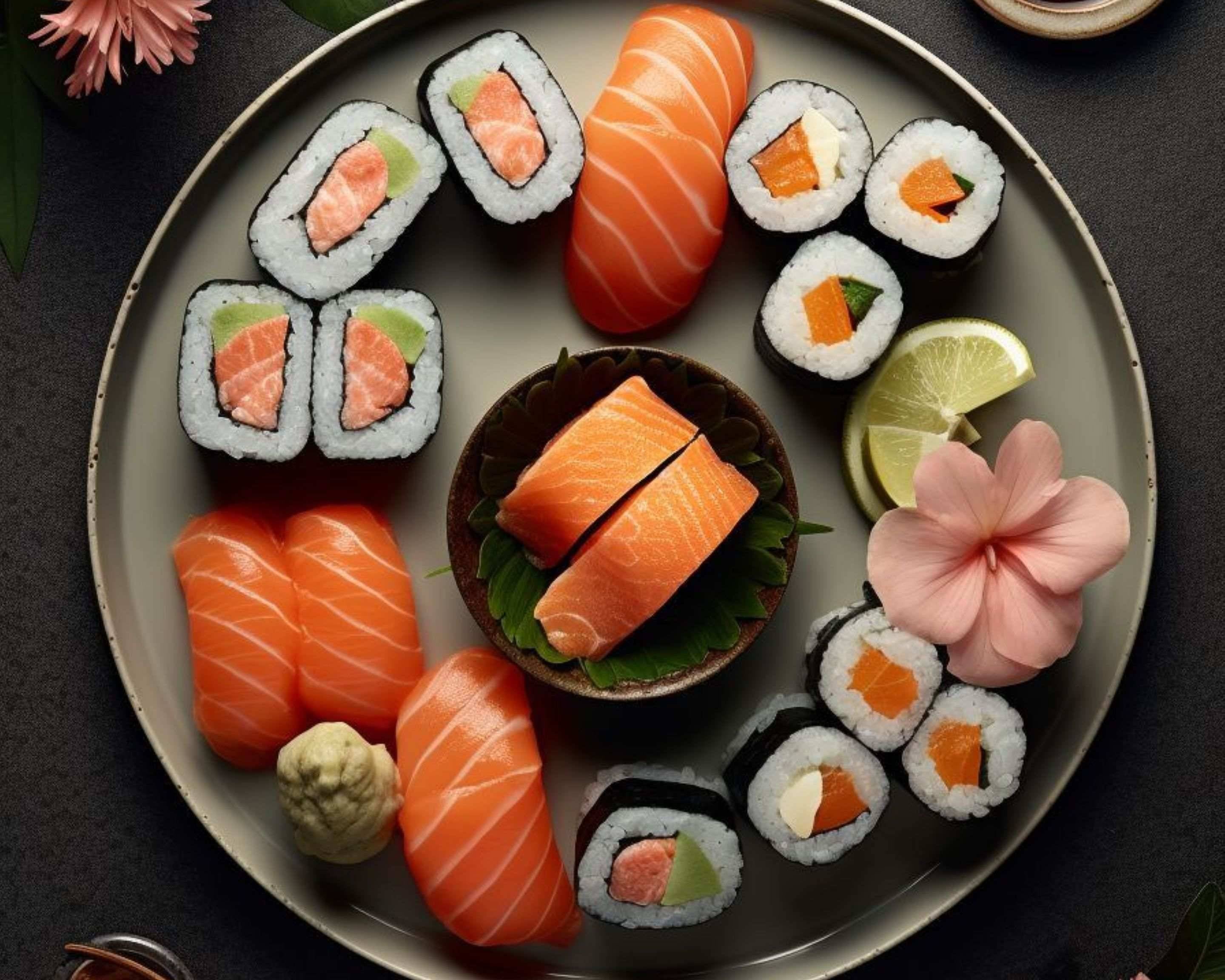 2 Sushi Thon, 2 Sushi Saumon, 2 Sushi Saumon Teriyaki, 6 Maki Cheese Avocat, 6 Maki Salmon Roll, 6 California Chicken Katsu, 6 California Saumon Avocat, 6 Spring Saumon Avocat, 6 Spring Thon Cuit Avocat€49.90SALMON CLASSIC (10 pièces )