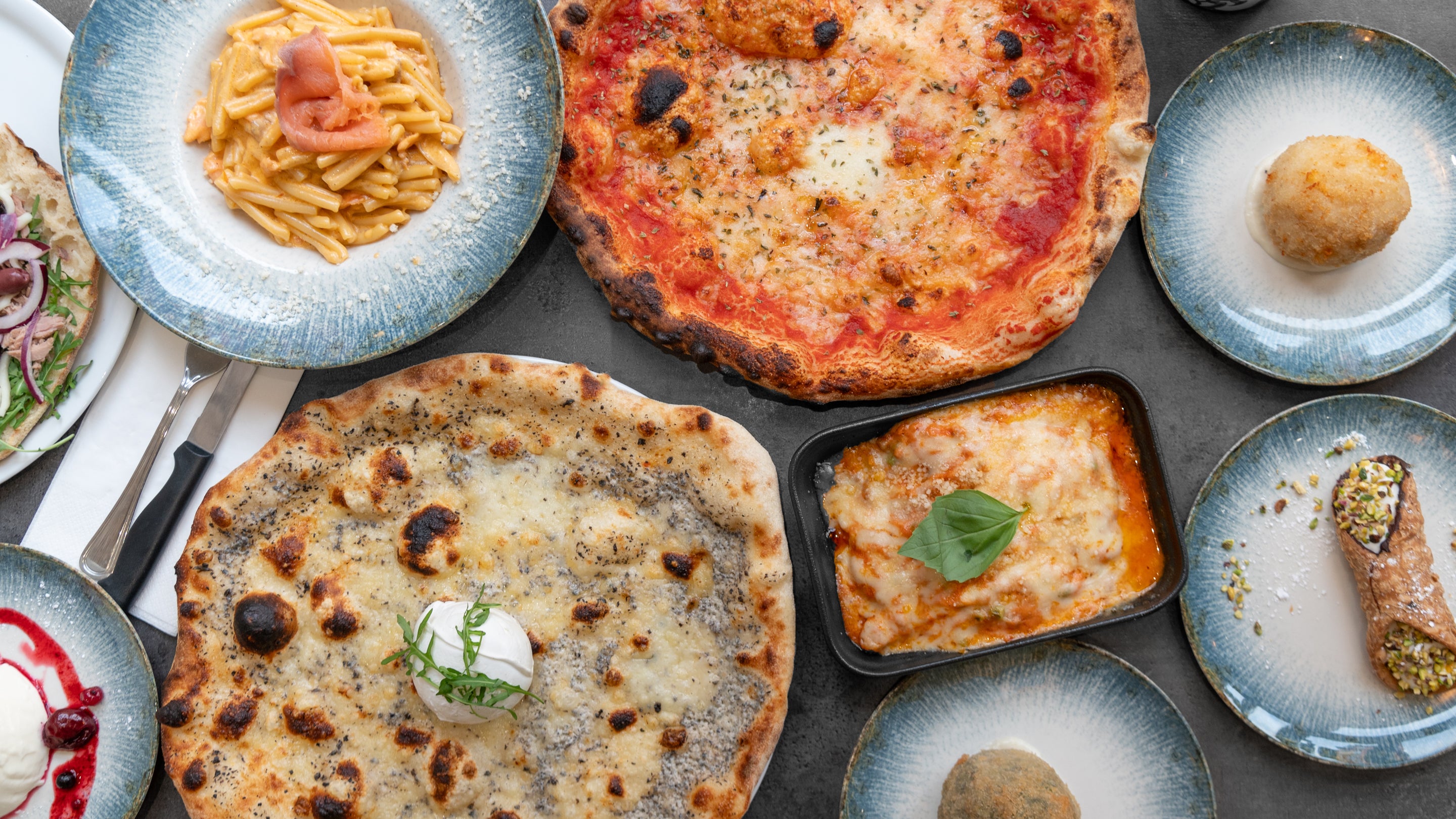 sandwich fait avec la pâte à pizza farci de pesto de pistache , mortadella et mozzarella€14.00Tomate pelée, anchois, oignons,huile.