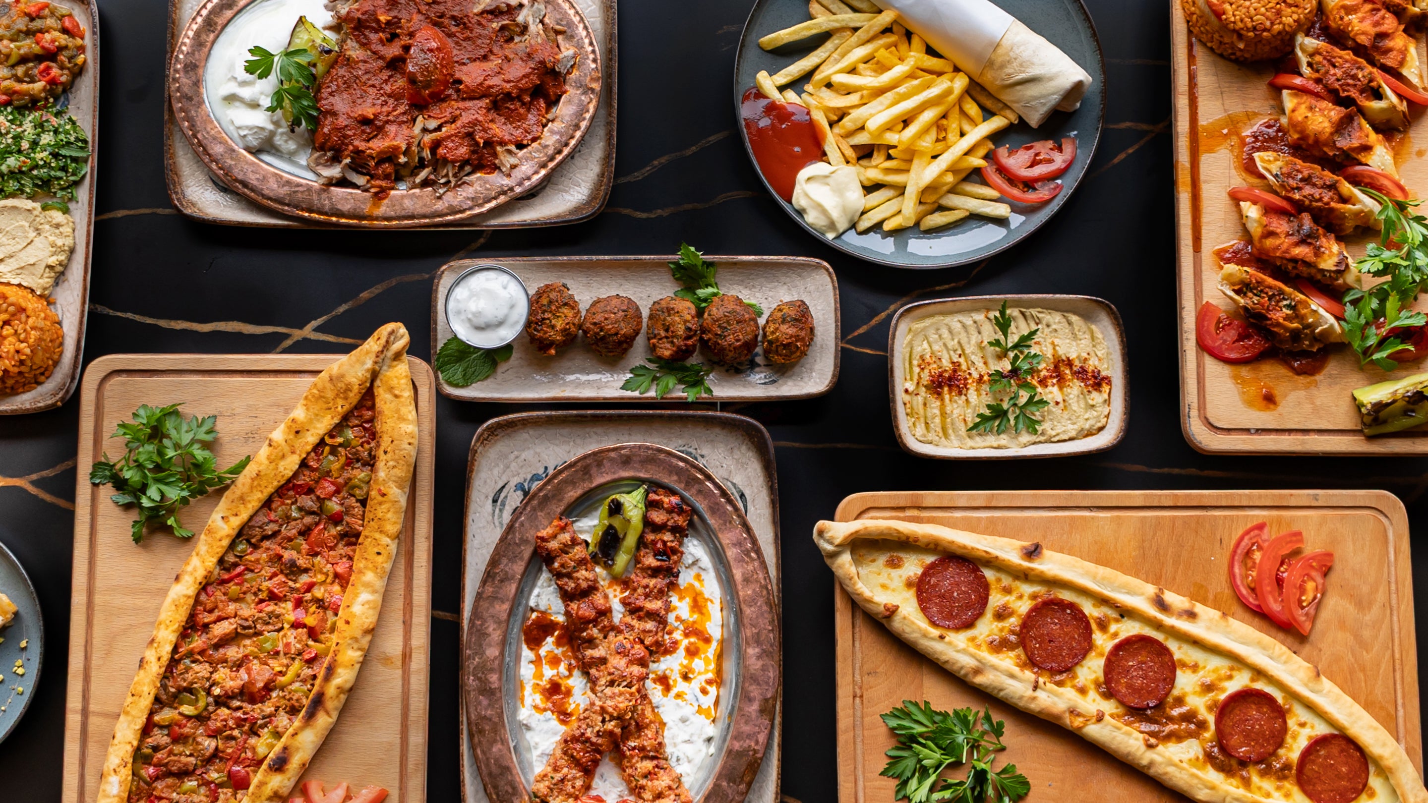 Cacık, houmous, taboulé, acılı ezme, patlıcan ezme, patlican au yaourt12,00 €PopulaireCacik