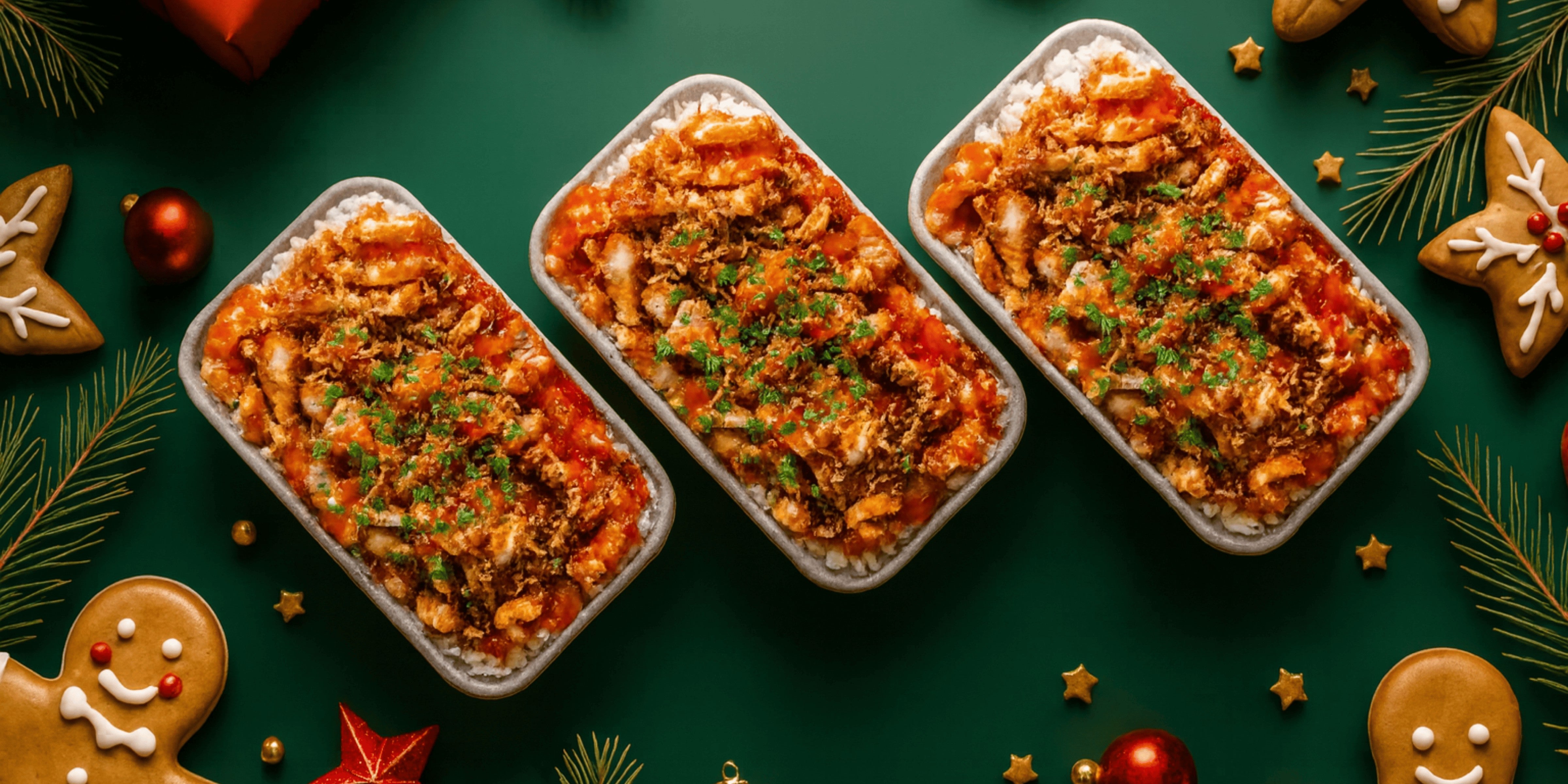 Riz parfumĂ© accompagnĂ© d’une Sauce SecrĂšte Maison, Poulet Croustillant Maison, Oignons frits, Persil et Sauce au choix.